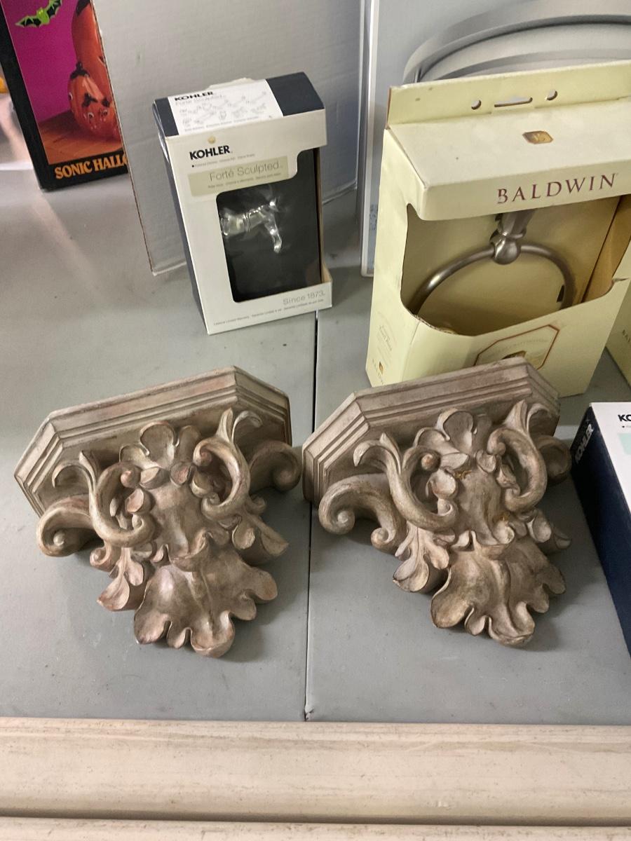 Baldwin Towel Rings, Robe Hooks, ceiling mount lamp , pair of wall shelves, Towel Bars and more