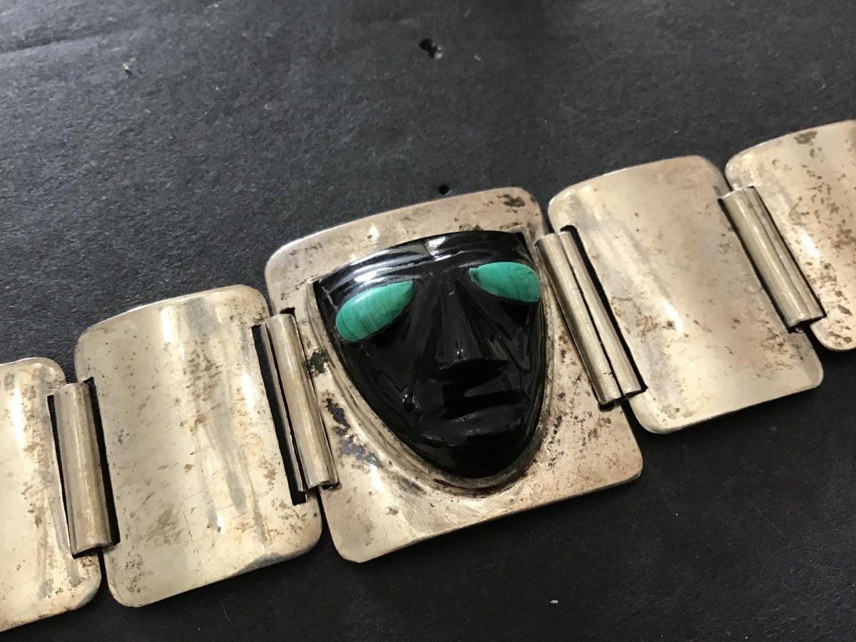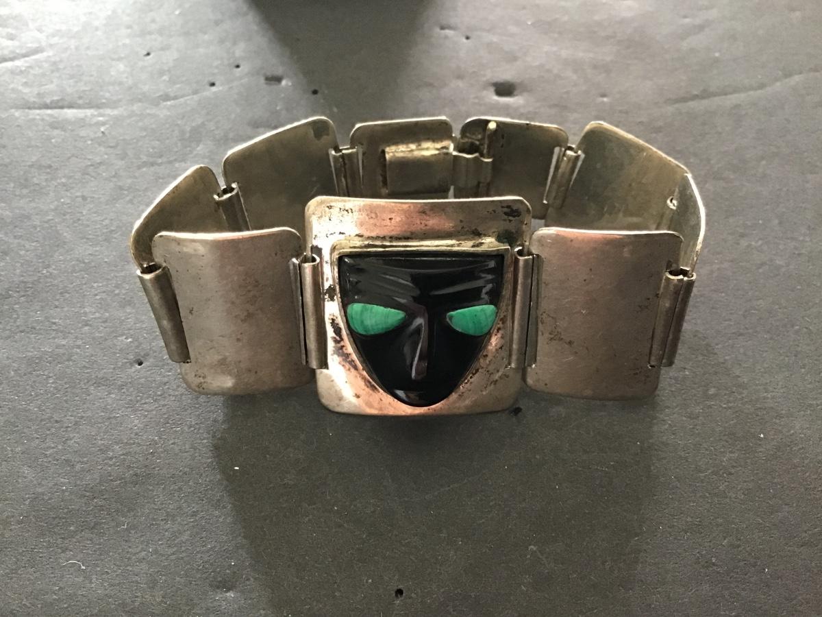 850. Silver Onyx Turquoise Vintage panel Bracelet. Vintage
