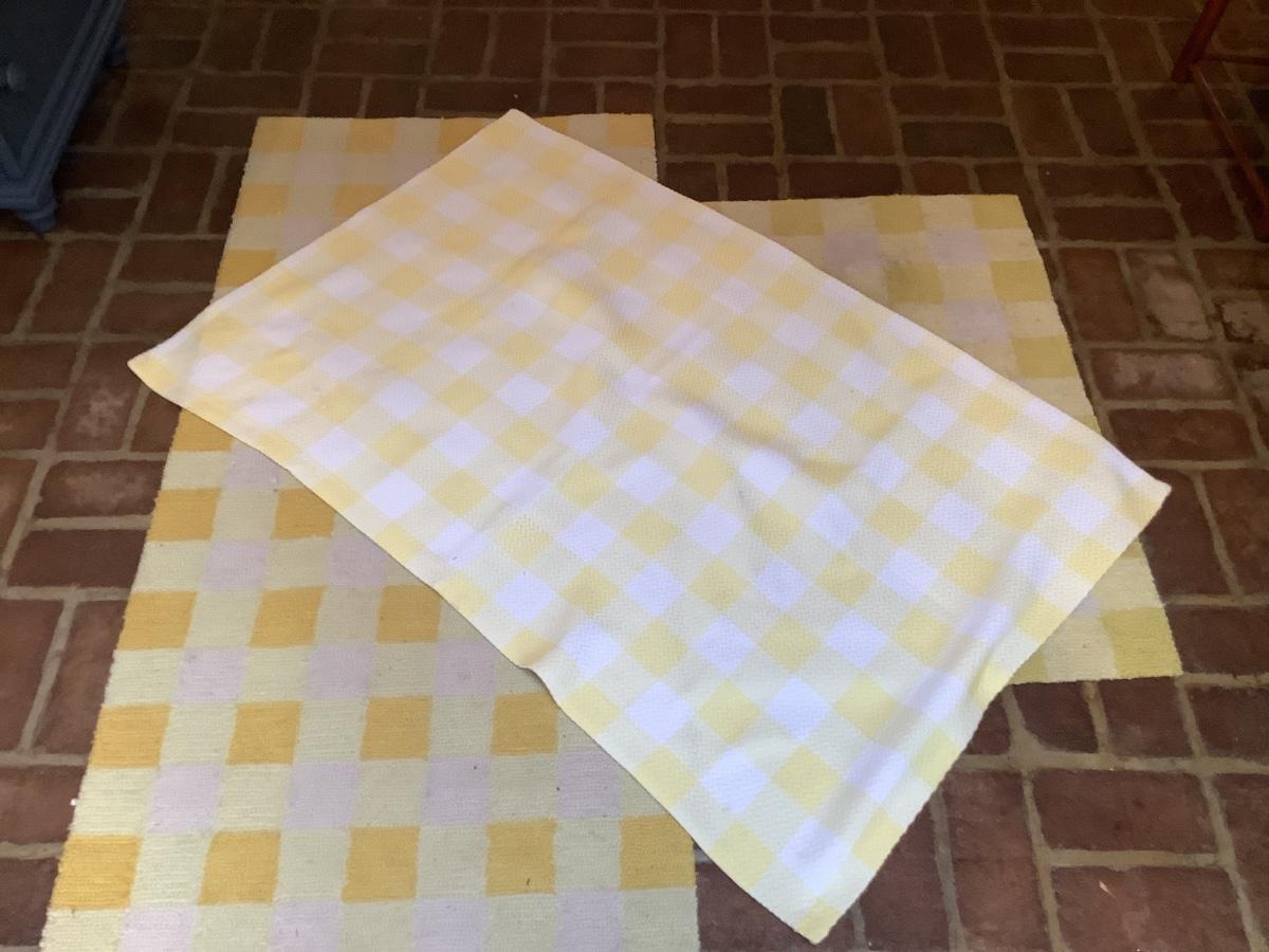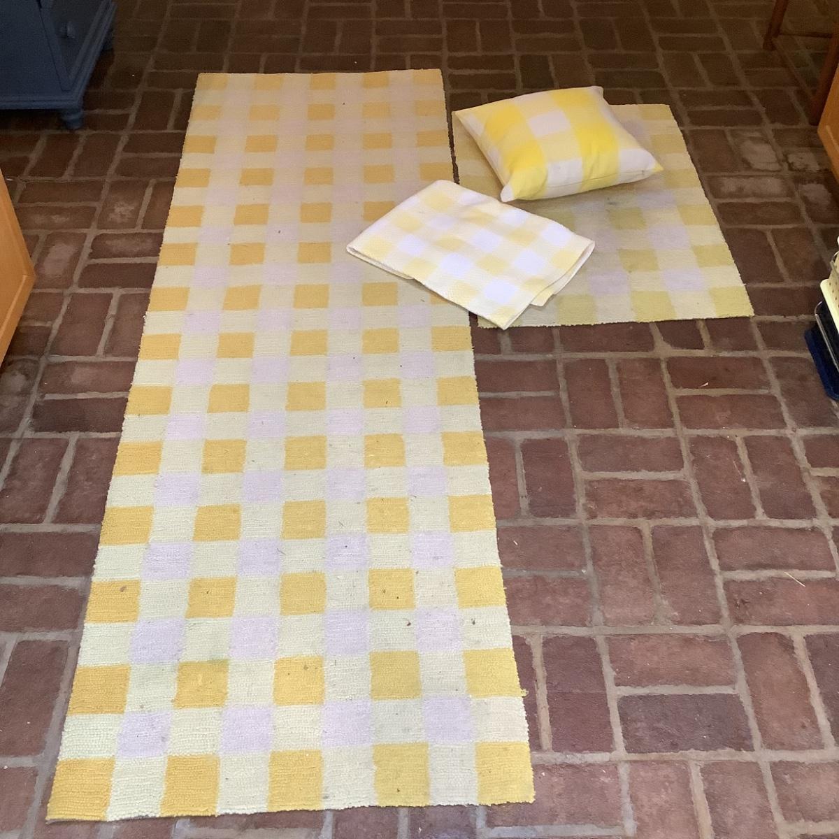 8509 Momeni Yellow and White Check Hooked Rugs with Pillow and Throw Rug