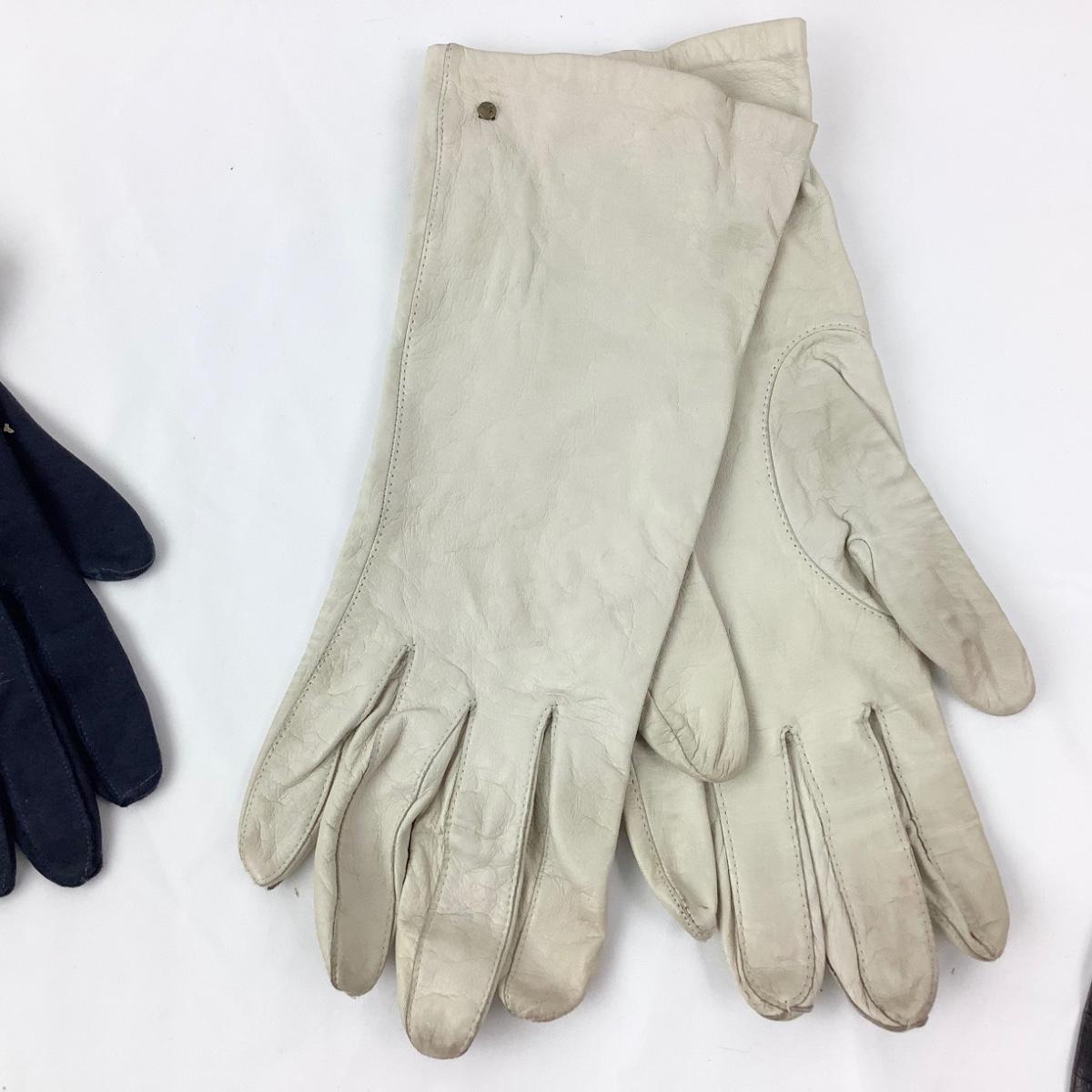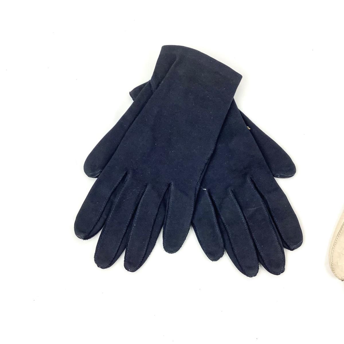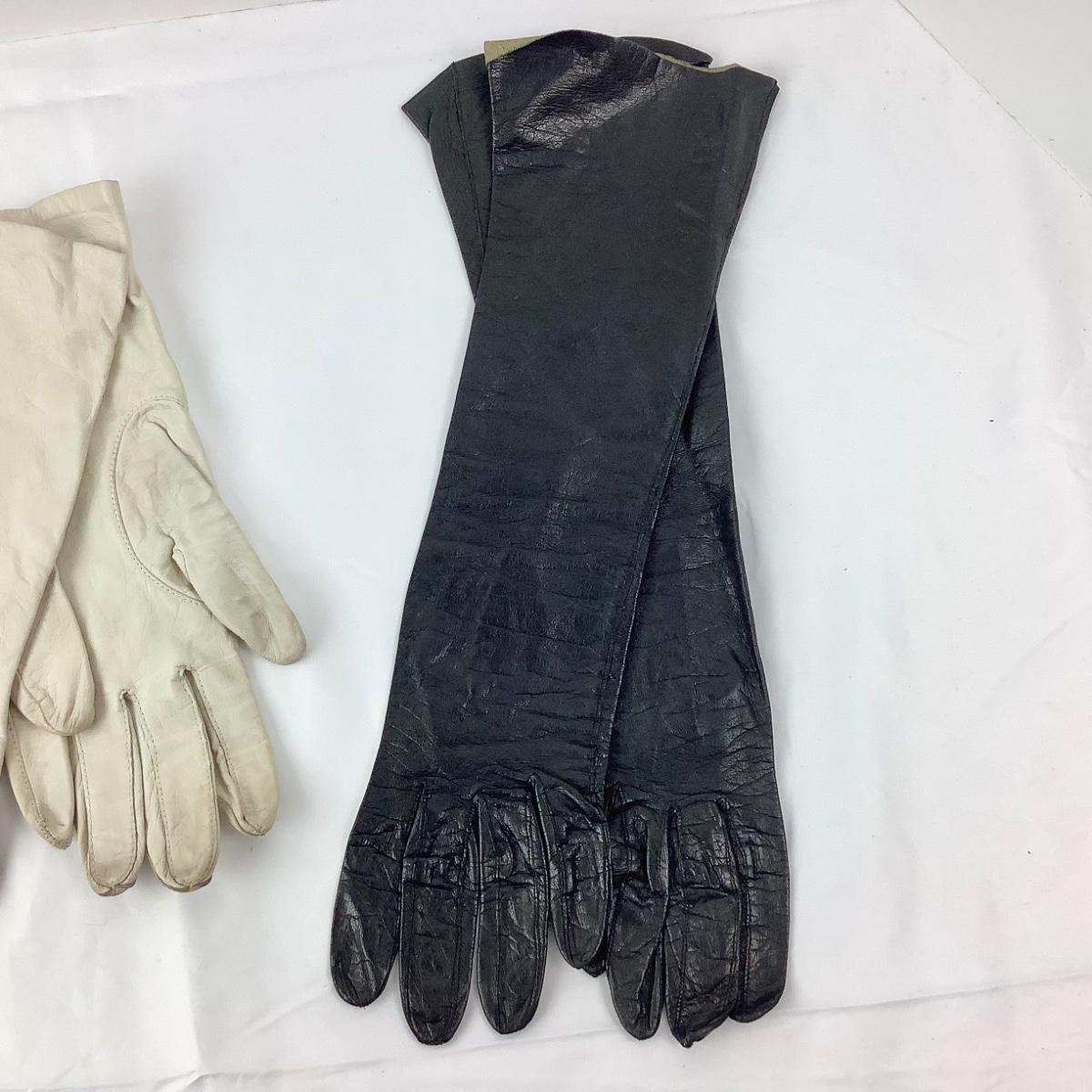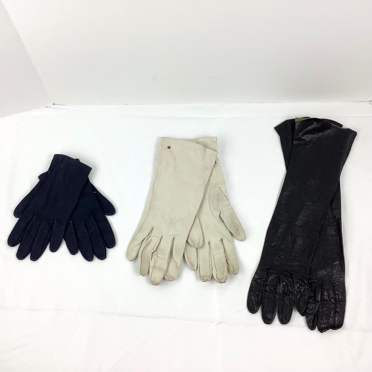 All gloves are by Aris of Paris, dark blue pair is a size 6.5, cream gloves are 6.5, black gloves are 15" in length and size 7.