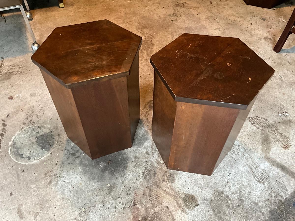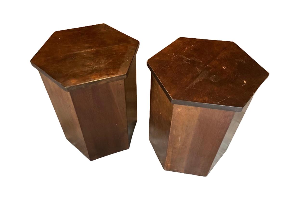 852 Pair of Vintage Pine Wooden Hexagon Stands