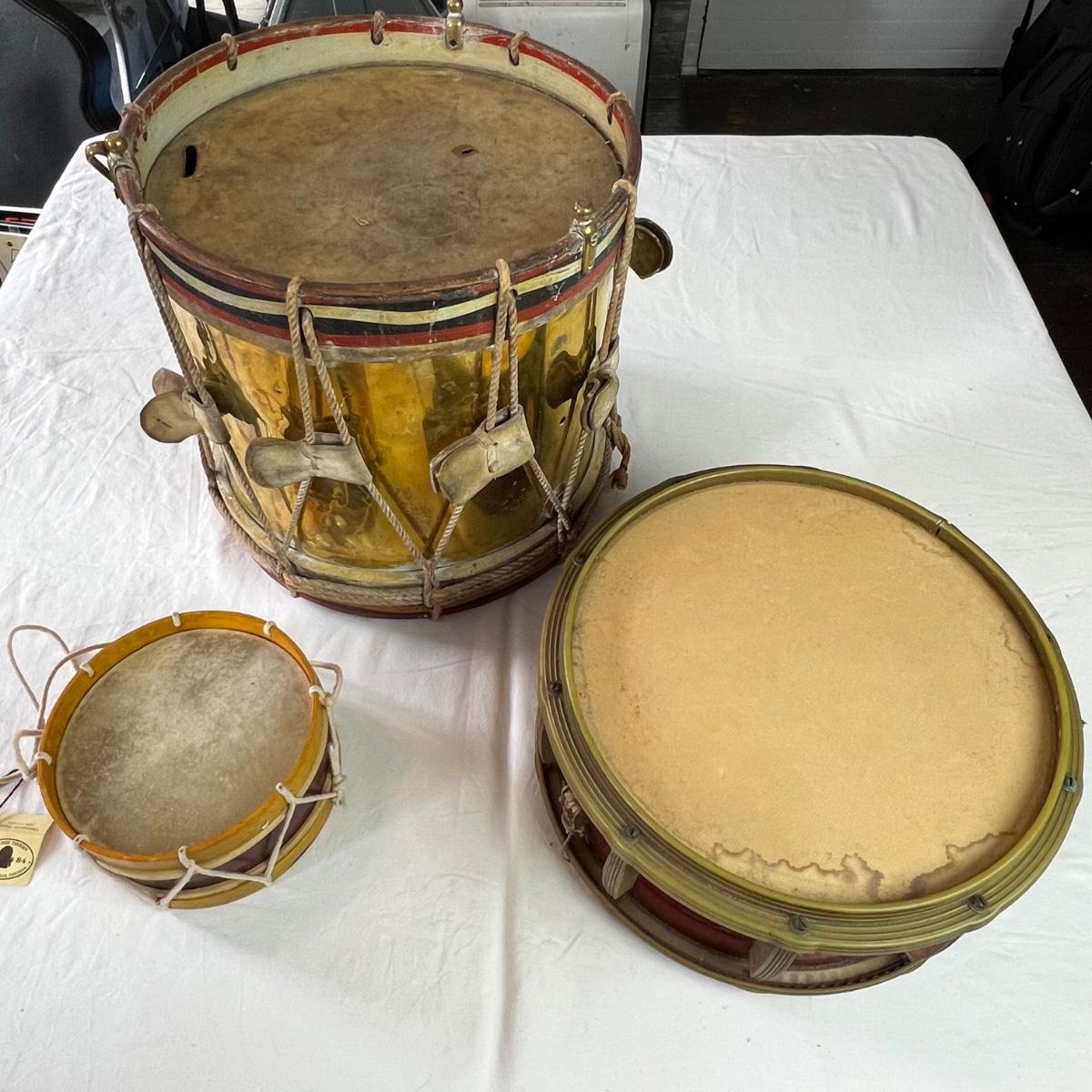 U853 Antique British Regimental Brass Drum, Vintage Mastro Snare & Kids Drum