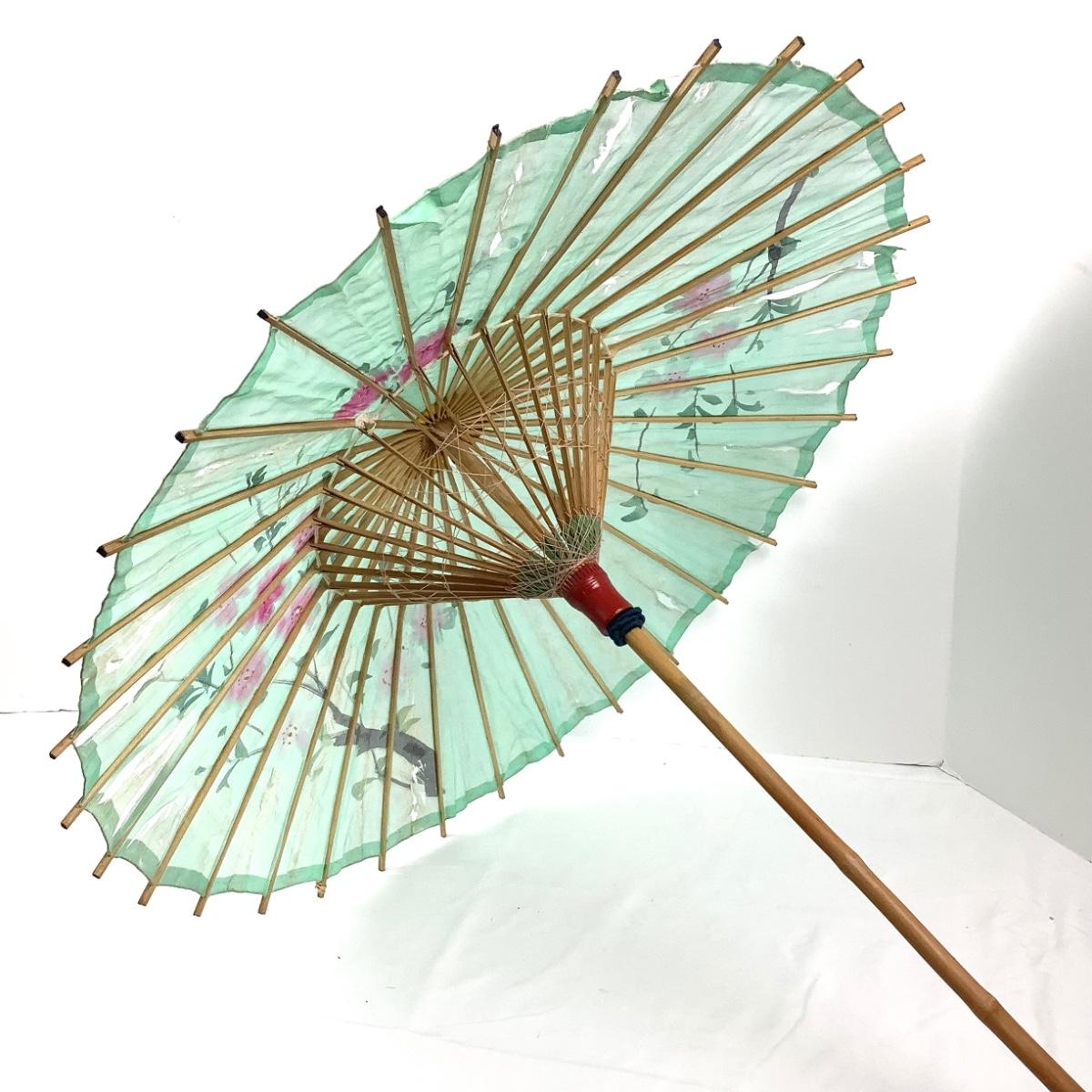854 Antique Bamboo and Silk Parasol