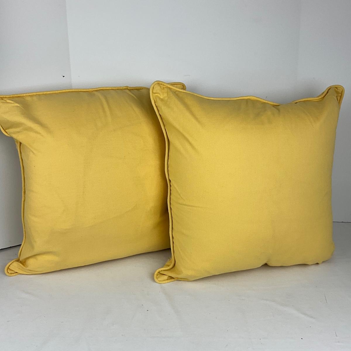855 Pair of POTTERY BARN Yellow Embroidered Decorative Pillows