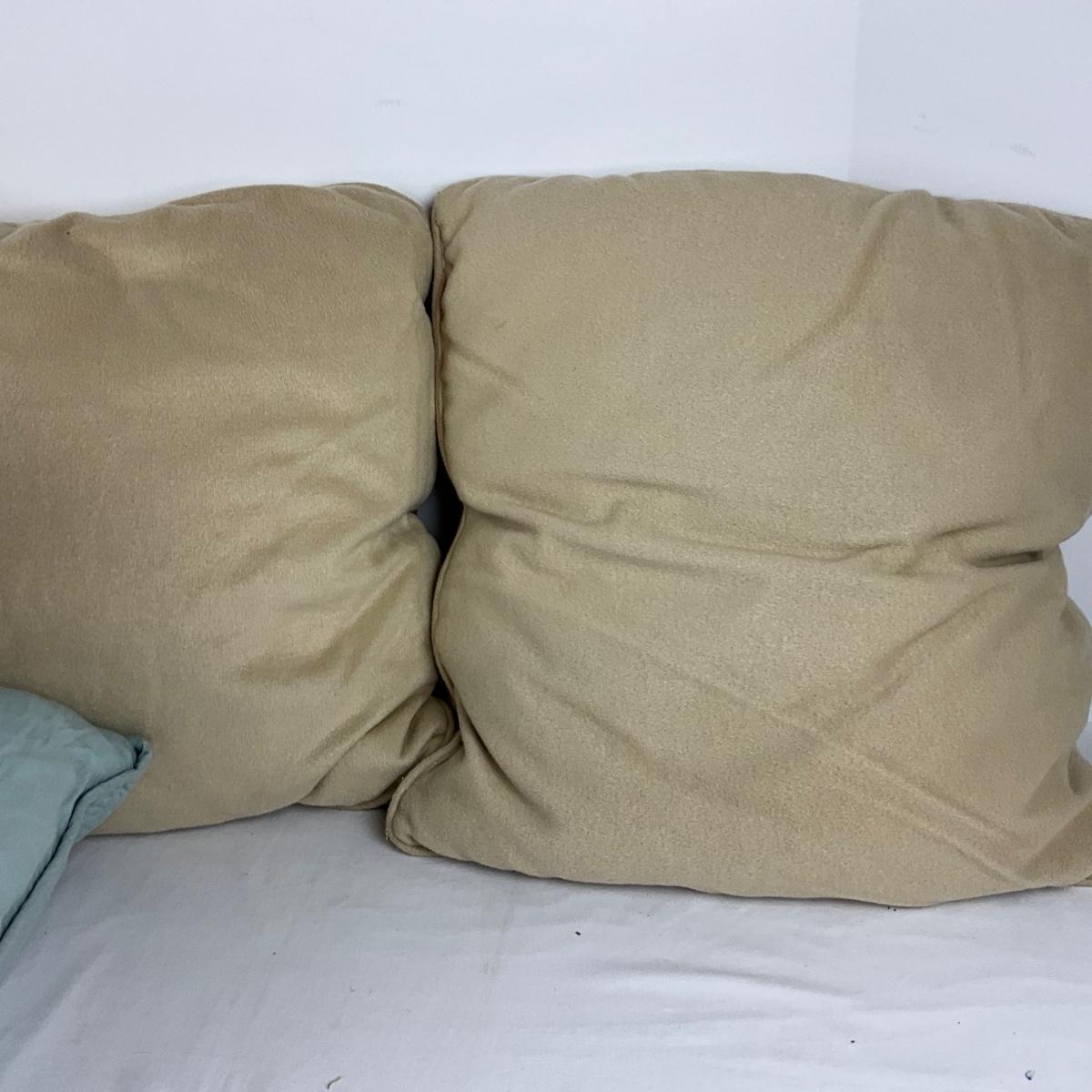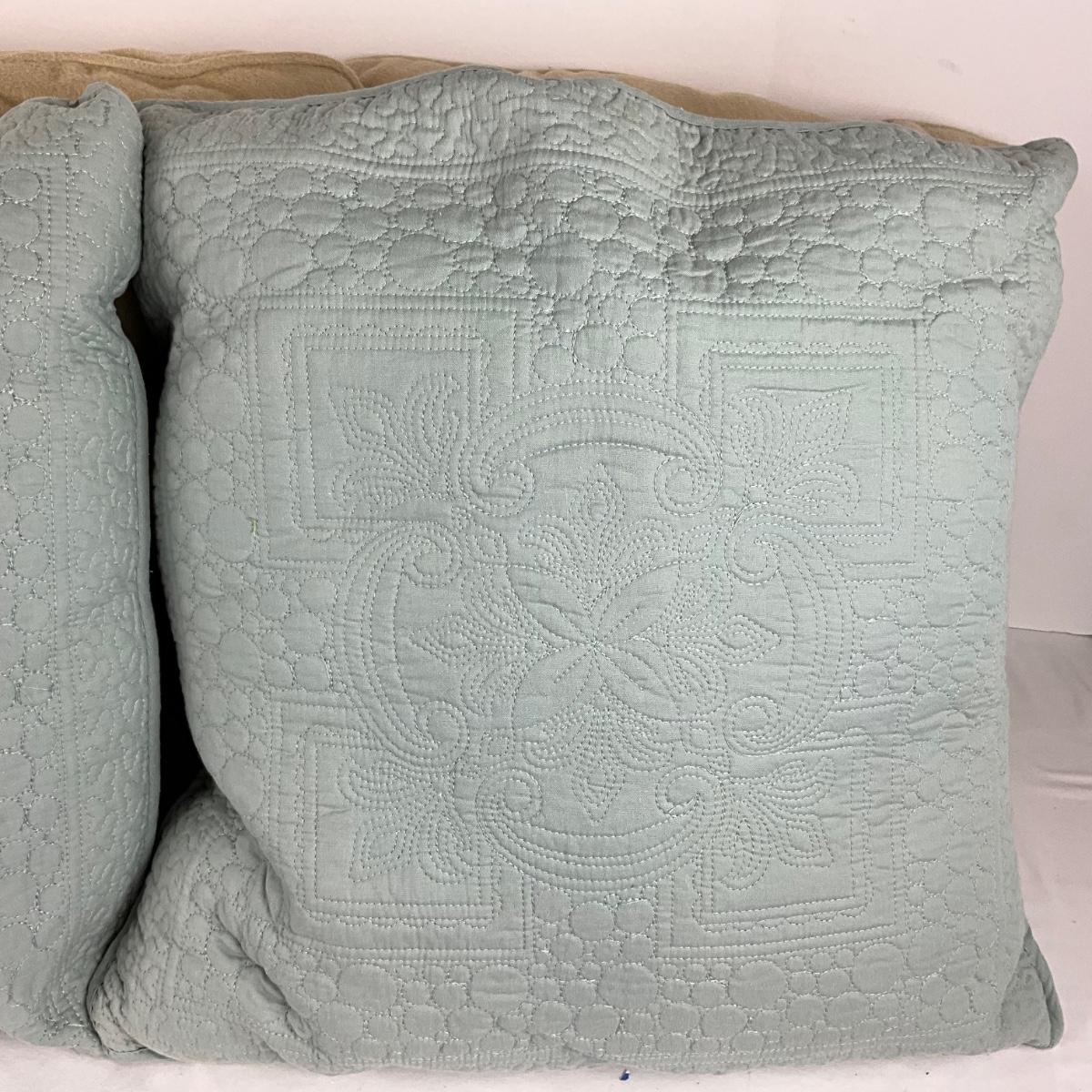 2 quilted blue and 2 flannel tan