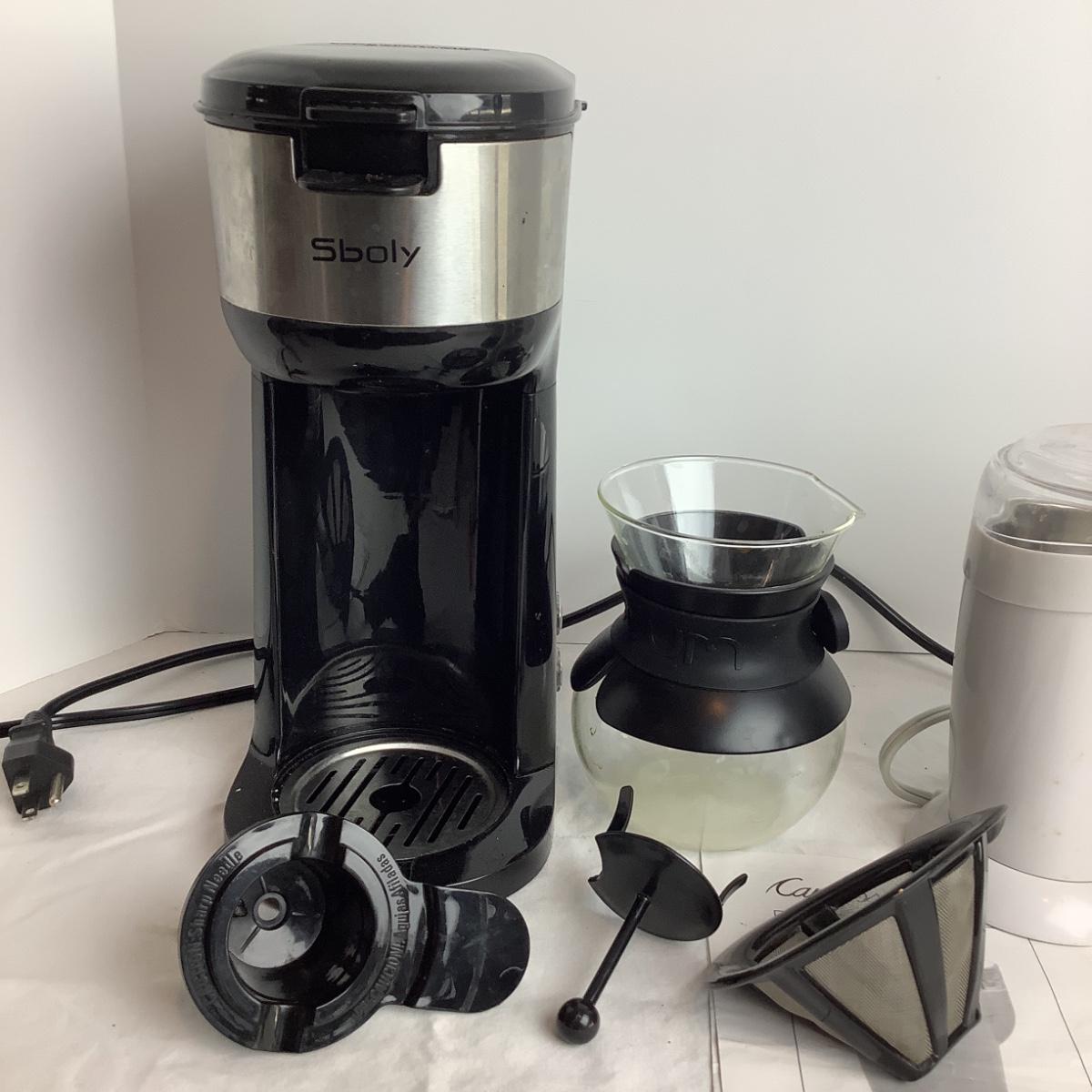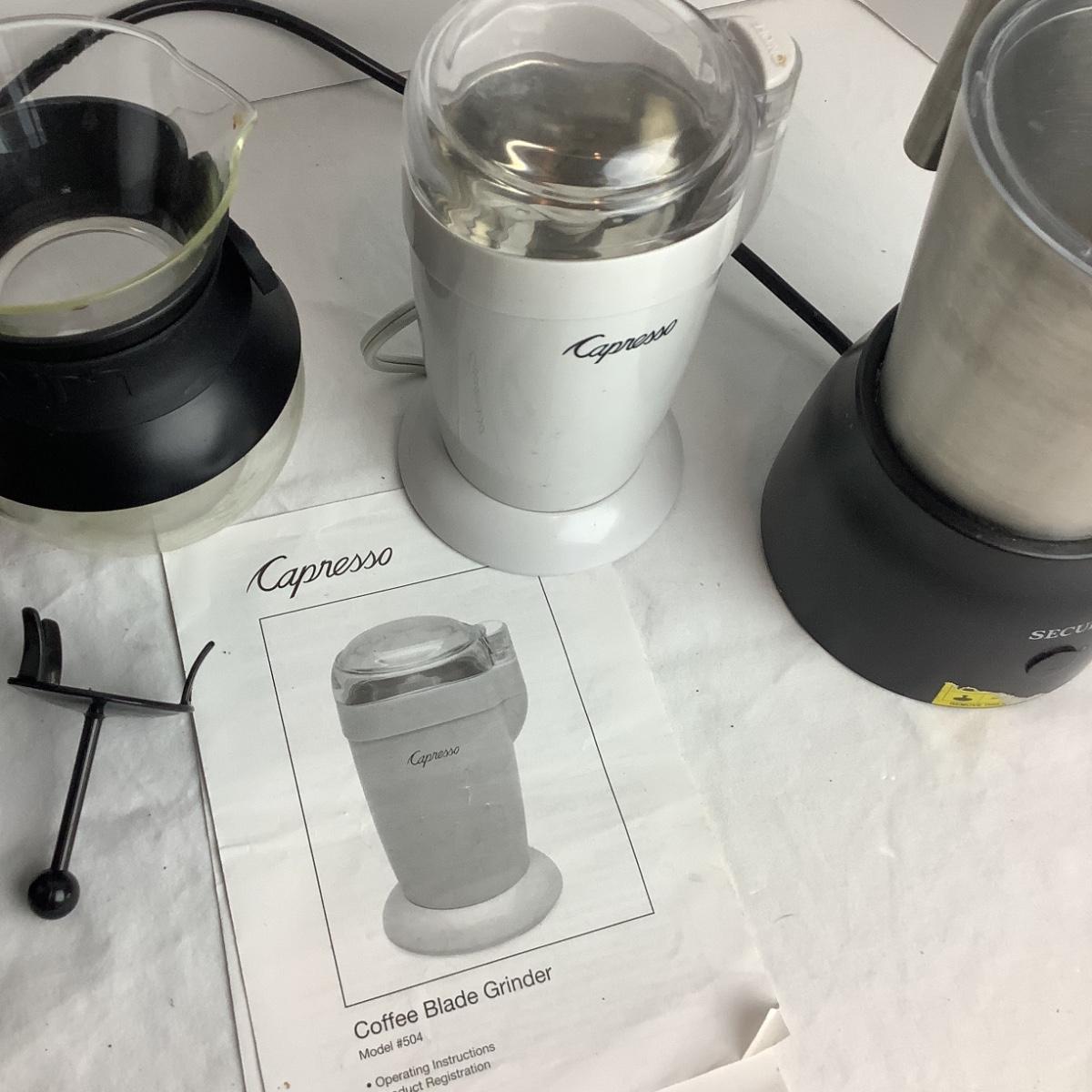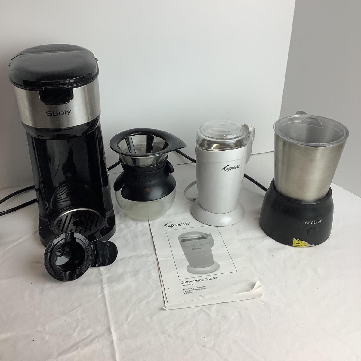 8563 Sboly Single-Serve Coffee Brewer, Capresso Coffee Blade Grinder, Secura Stainless Steel Milk Frothier
