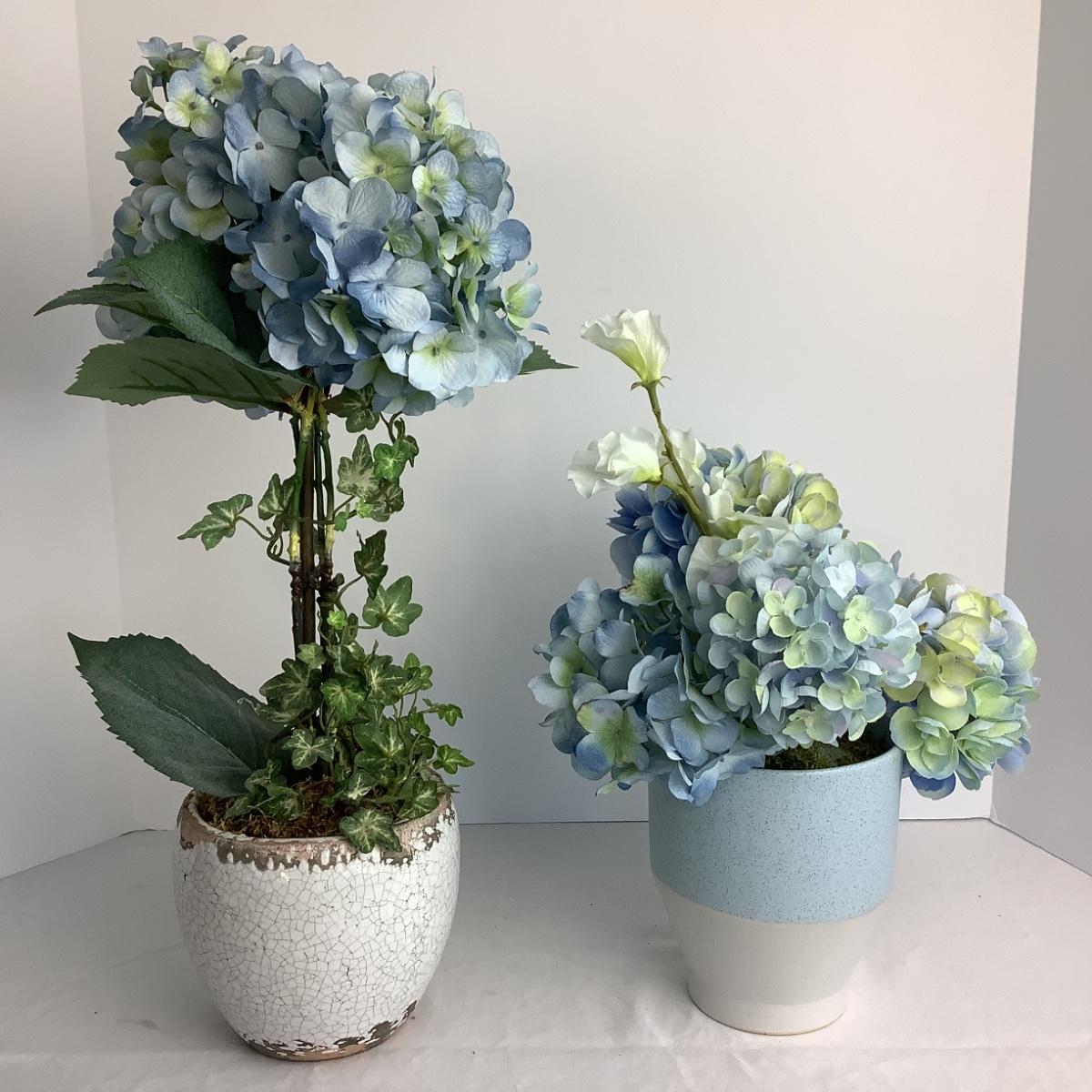 Two Faux Flower Arrangements measuring 13"h & 19"h