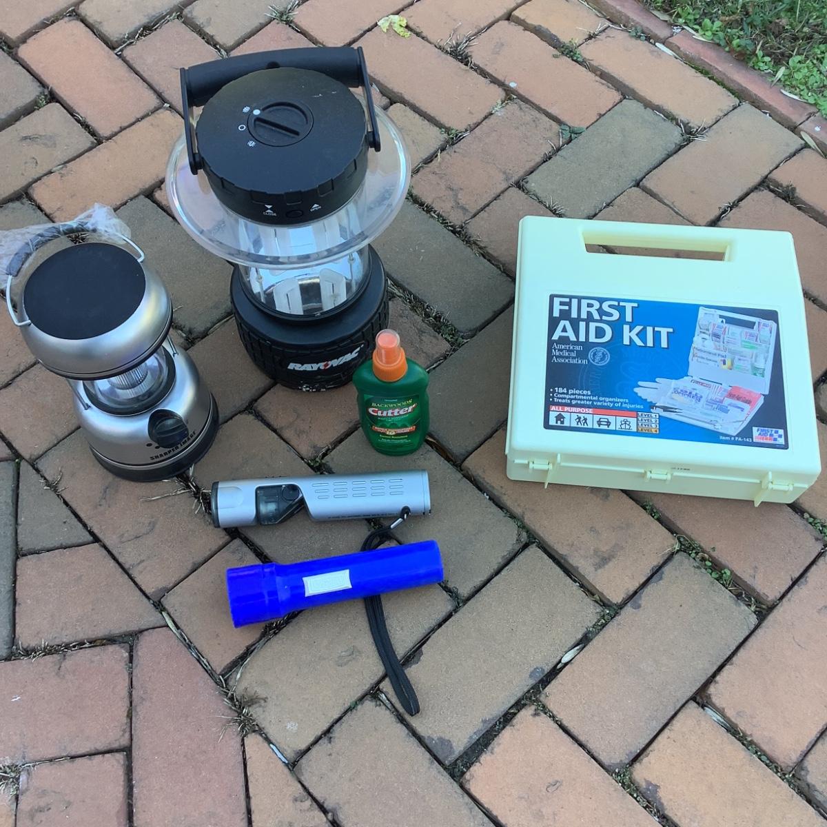 8574 Rayovac 8 D Cell Sportsman Area Lantern, Sharper Image Lantern, First Aid Kit, 2 Flashlights & Mosquito Repellent