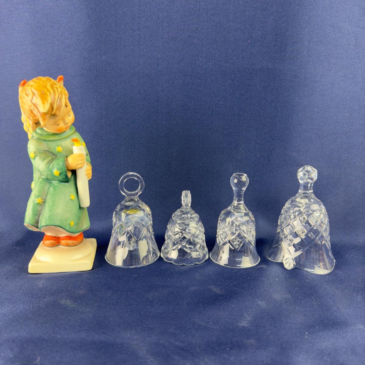 858 Vintage Goebel Heavenly Angel Figure With Three Crystal Bells, One Dome