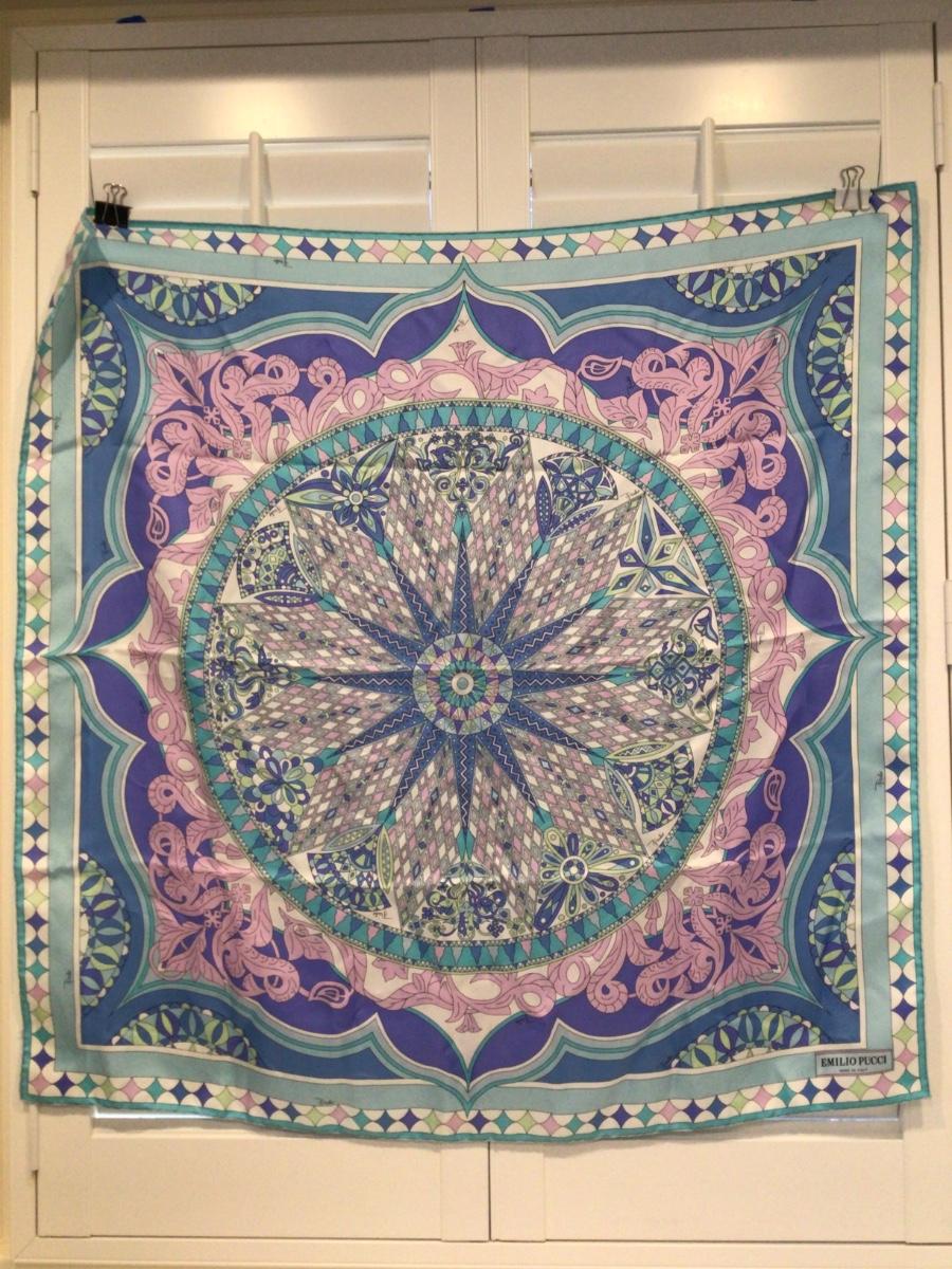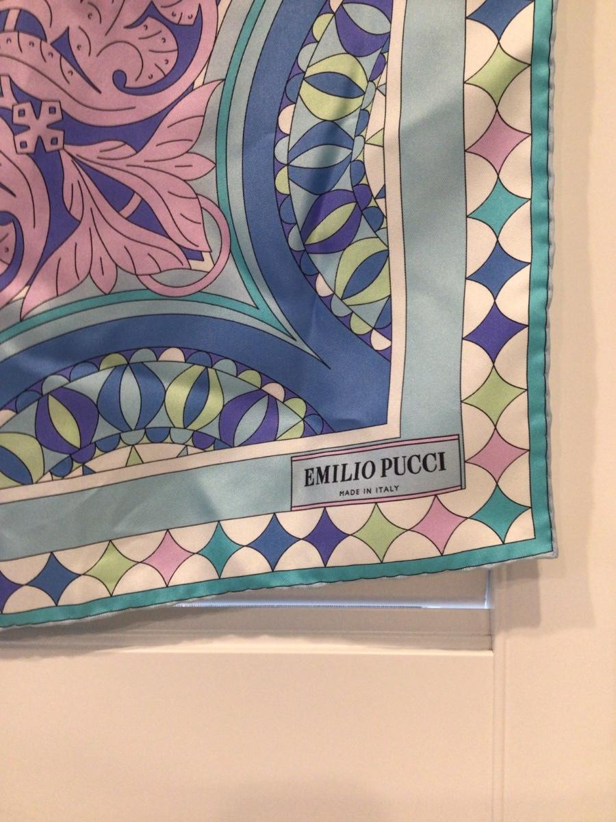 8596 Emilio PUCCI Silk Pink and Blue Medallion Design Scarf