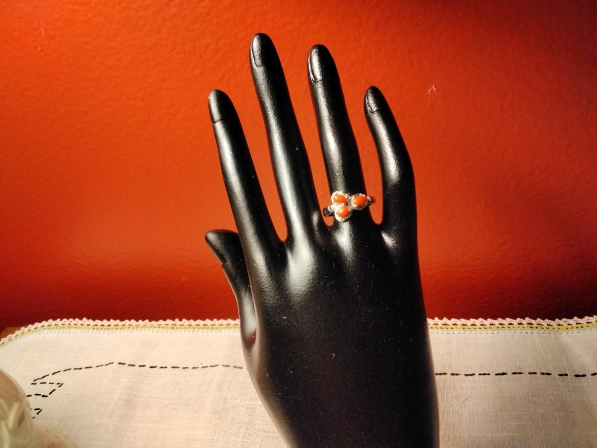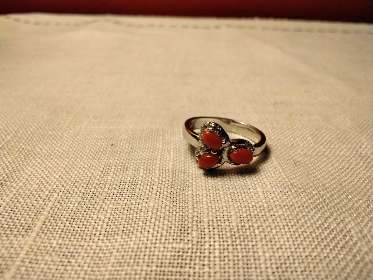 85ctw Coral & White Sapphire 925 Sterling Silver Ring Sz. 6.5