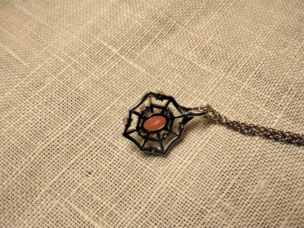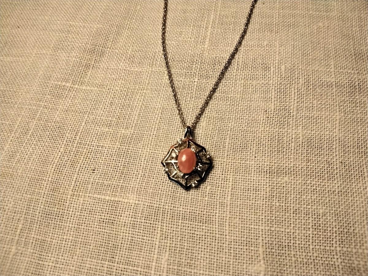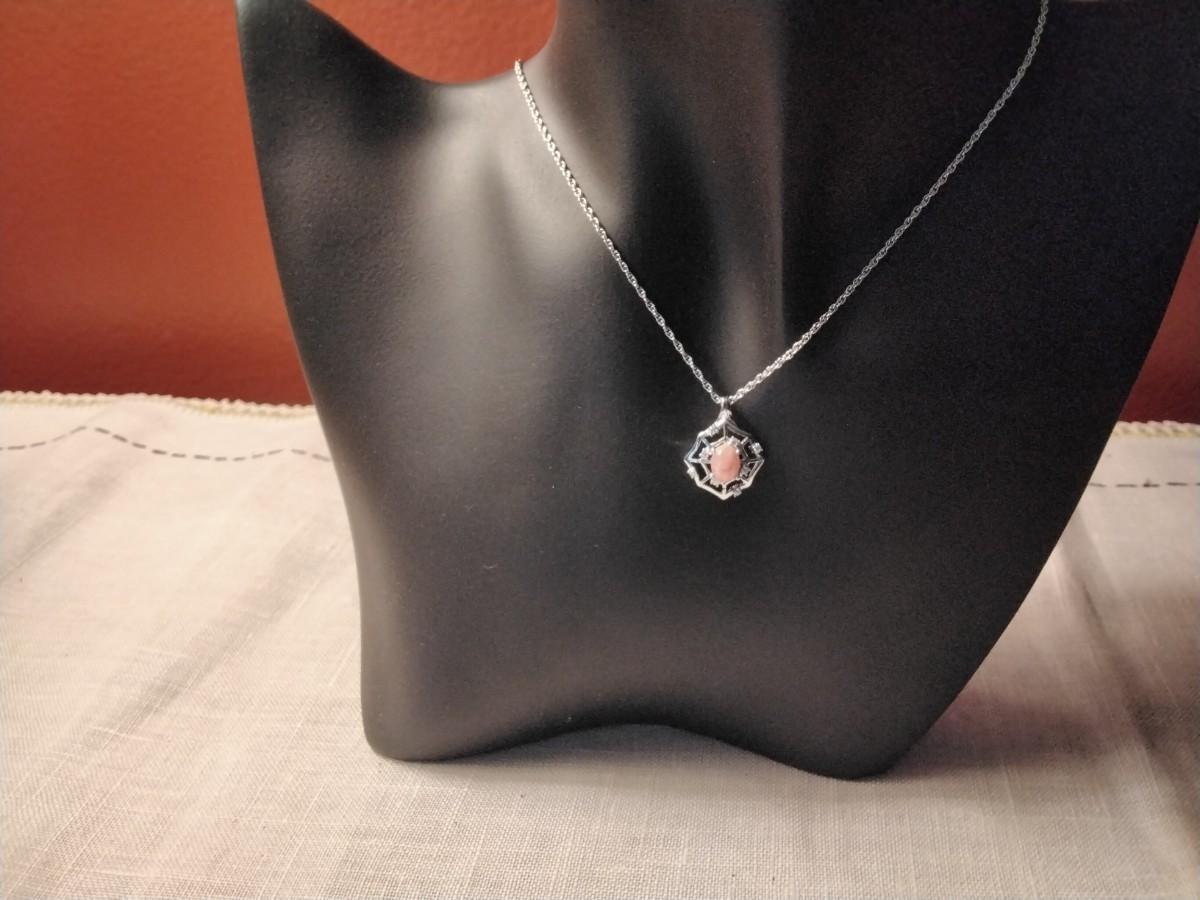 .85ctw Rhodochrosite & White Sapphire 925 Sterling Silver Necklace