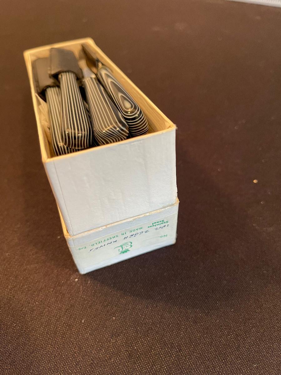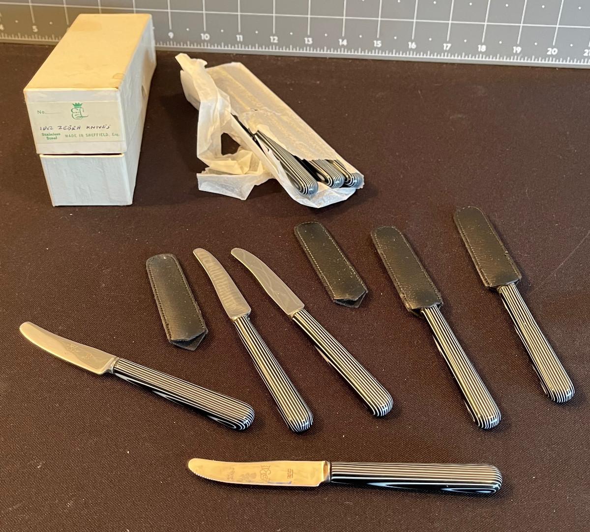 #86 (12) Sheffield Zebra Butter Knifes or hors d'oeuvres