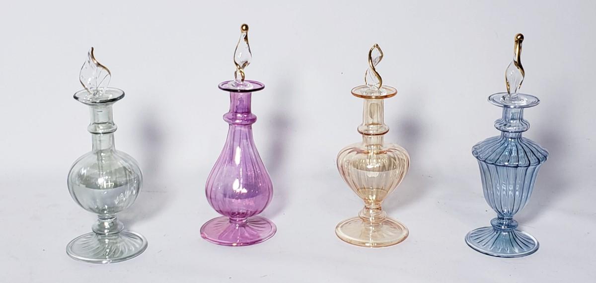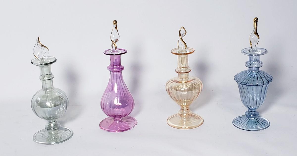 4 Egyptian hand blown glass perfume bottles