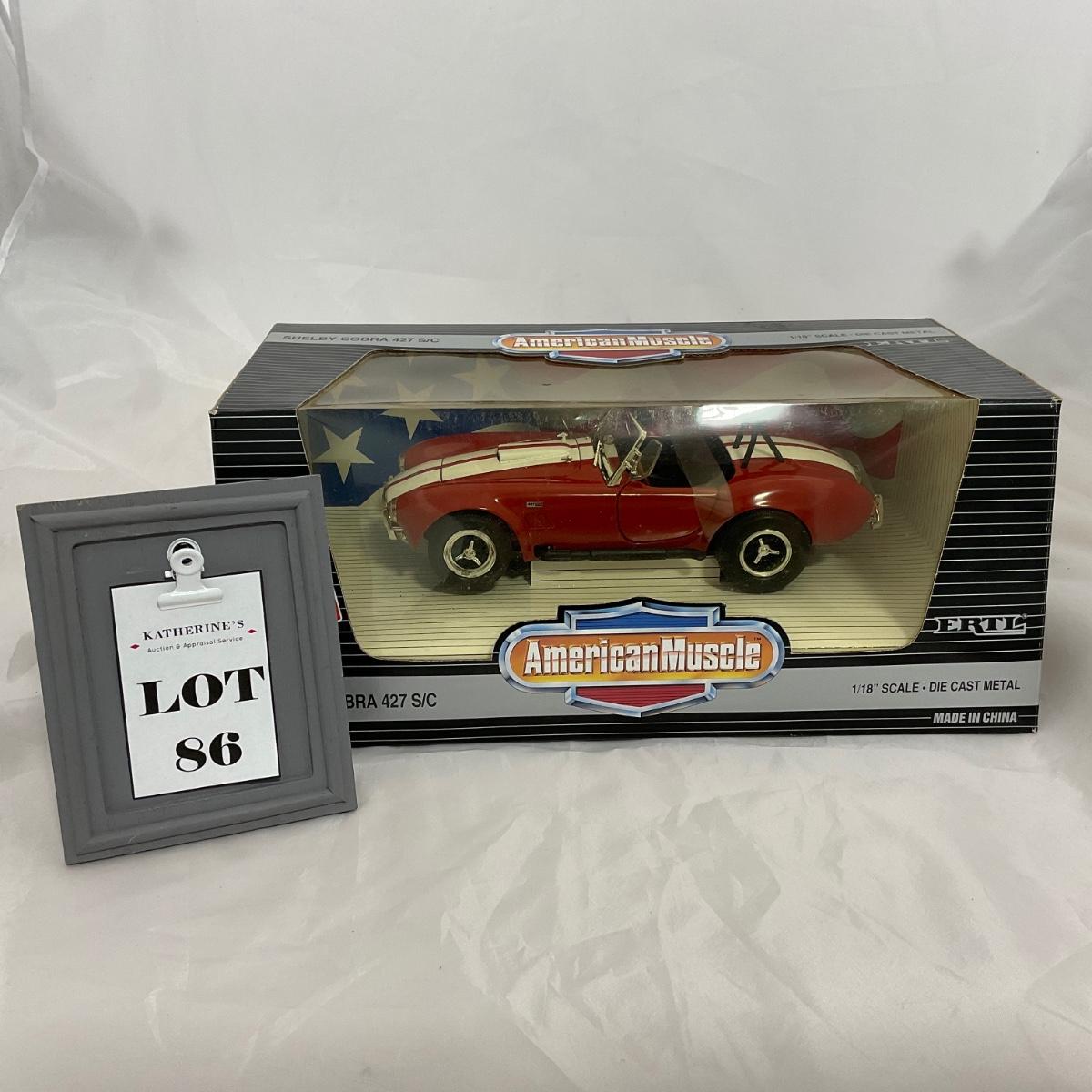 One die cast 1:18 scale Shelby Cobra 427 S/C in box. Please see photos for details and condition. ::: Shipping is available on this lot. If you require shipping you must let us know at the close of the auction. We will coordinate with you after the item has been won. Shipping fees will include insurance up to or exceeding the value of all items being mailed. If you have any questions regarding this lot please contact the auctioneer either via this website, by direct email or by phone. PICK UP TIMES and other important information can be found in the TERMS and DESCRIPTION of the auction. Please take a look for pertinent information. Thanks!