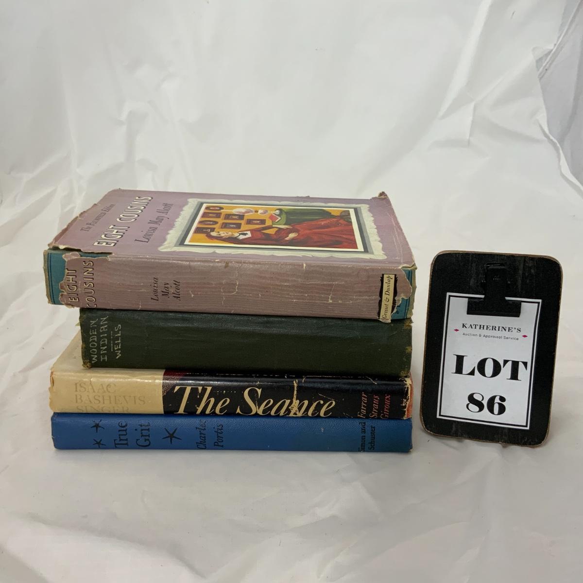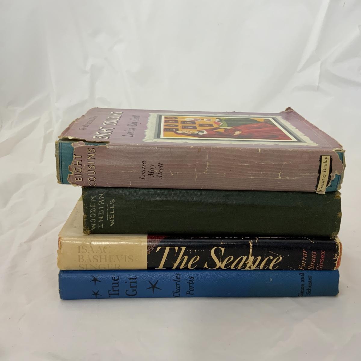 From the Estate of Peter Radovanovich: Four Vintage Novels. Books included are: True Grit by Charles Portia | The Seance by Isaac Bashevis Singer | Wooden Indian by Carolyn Wells | Eight Cousins by Louisa May Alcott. All books are in good vintage condition. Dust Covers do have some wear on them. Please see photos for details and condition. ::: Shipping is available on this lot. If you require shipping you must let us know at the close of the auction. We will coordinate with you after the item has been won. Shipping fees will include insurance up to or exceeding the value of all items being mailed. If you have any questions regarding this lot please contact the auctioneer either via this website, by direct email or by phone. PICK UP TIMES and other important information can be found in the TERMS and DESCRIPTION of the auction. Please take a look for pertinent information. Thanks!