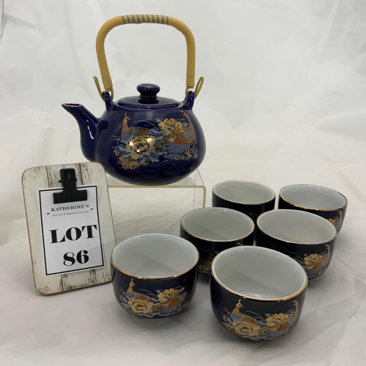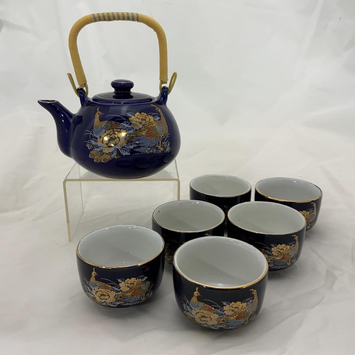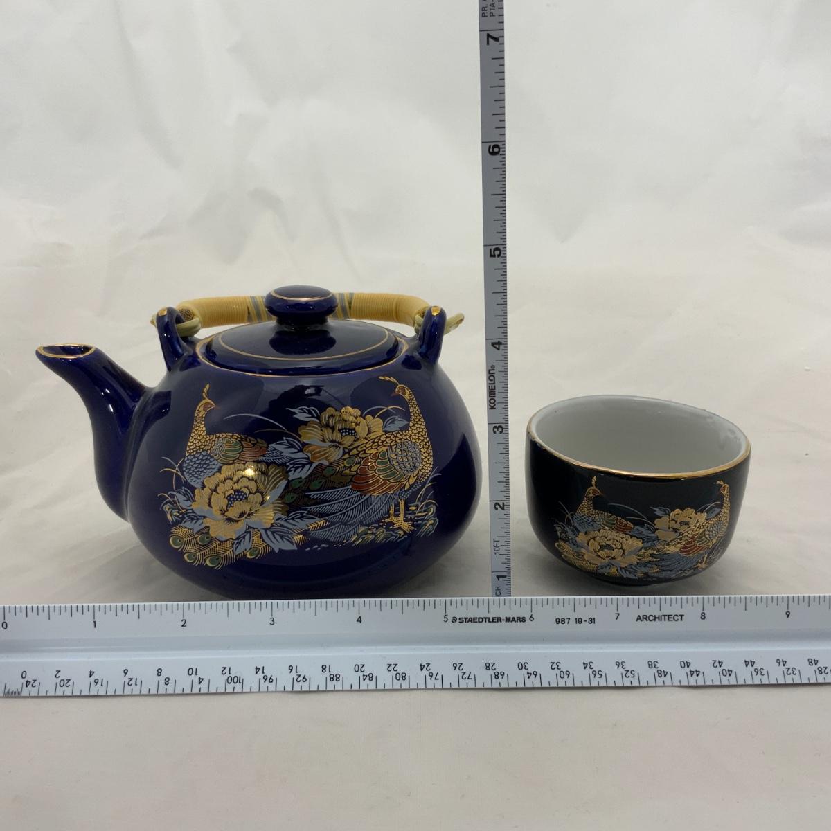 -86- Cobalt Blue Tea Set | Floral | Peacocks