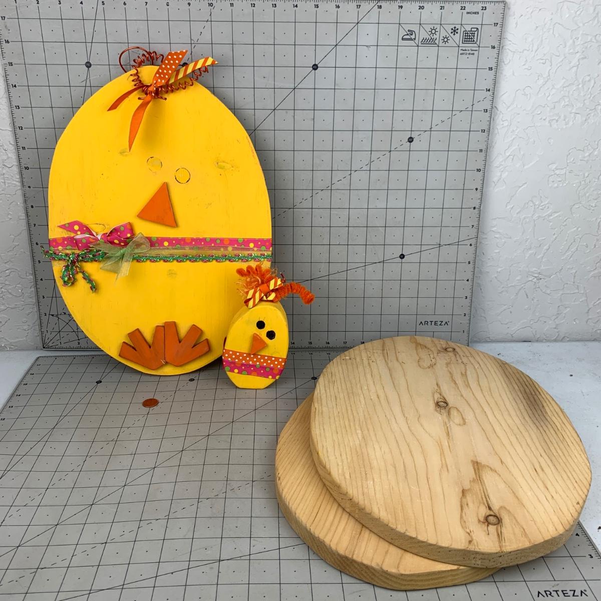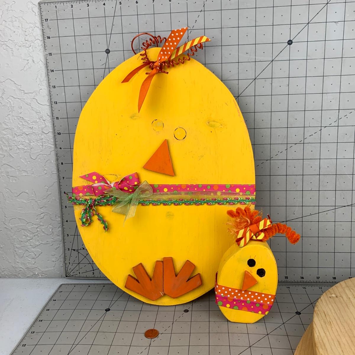 #86 Easter Chicks, Eggs & Heart Wood Decor (See Photos)