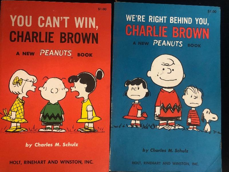 Bundle includes: You can't win Charlie Brown, we're right behind you Charlie Brown, the gospel according to peanuts, but we love you Charlie Brown and happiness is a warm Puppy. Vintage used condition