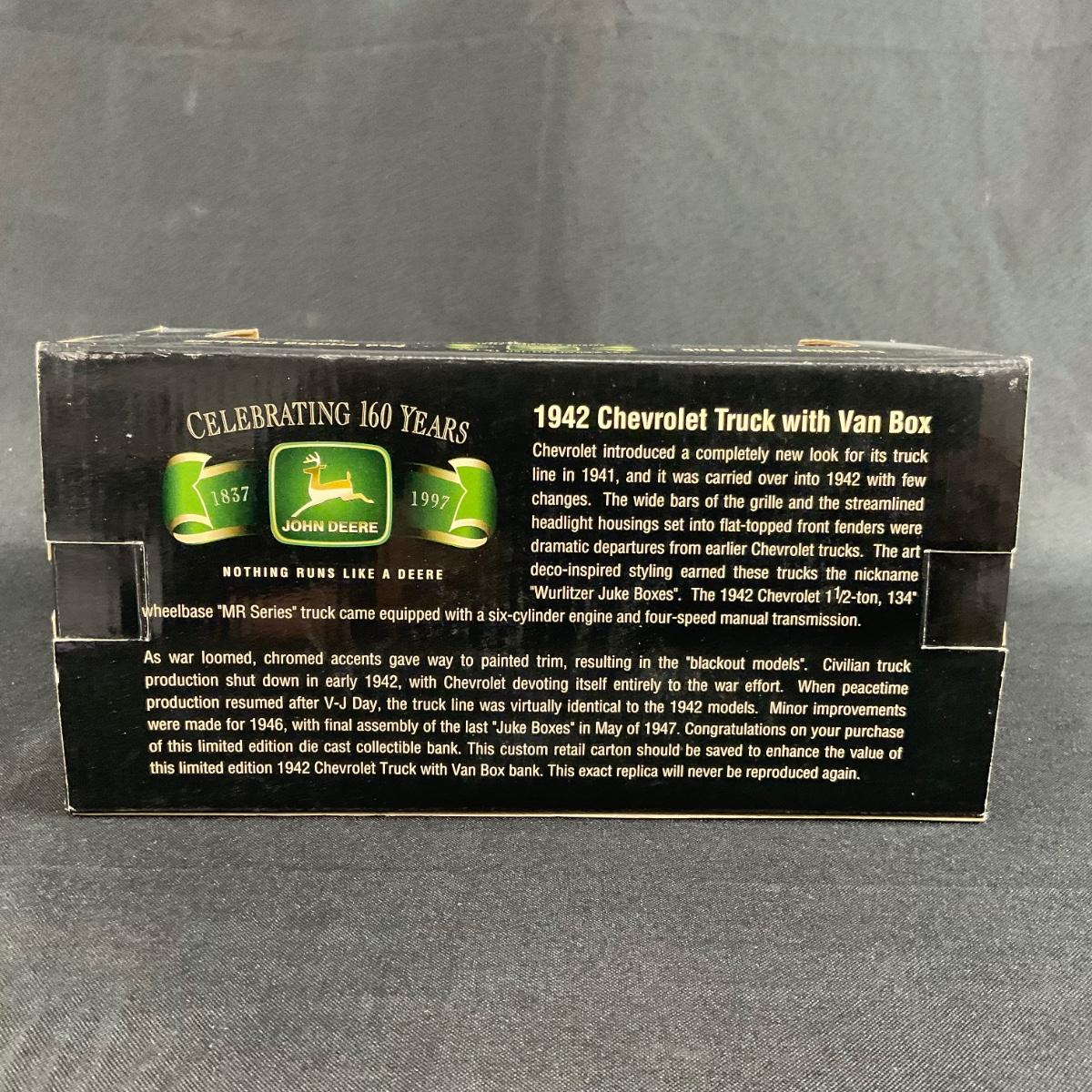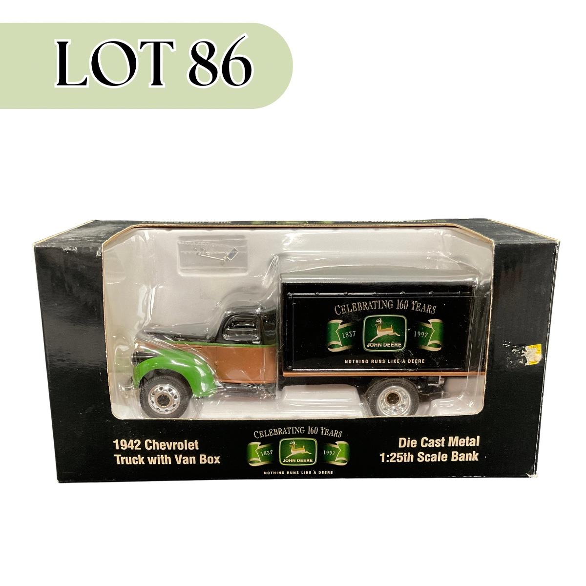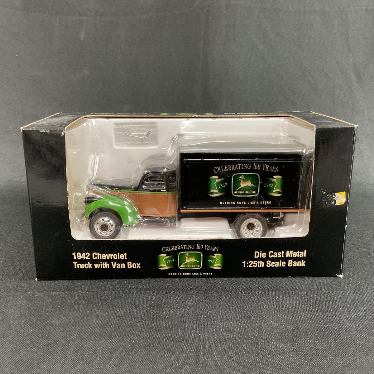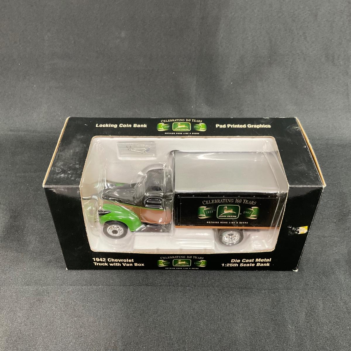 -86- JOHN DEERE | 1/25 Scale 1942 Chevrolet Truck With Van Box Anniversary Bank | New In Box
