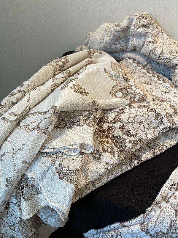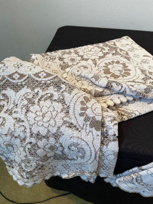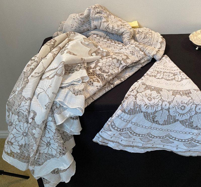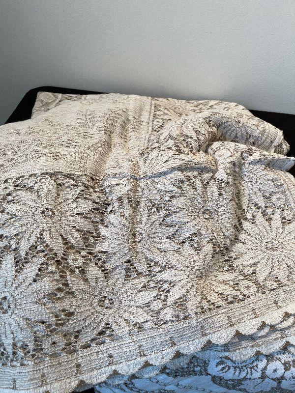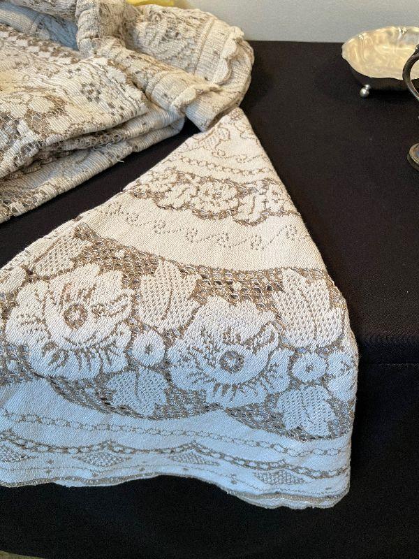 #86 Lace Table Cloths Taupe 2 Large 1 round and 1 oval