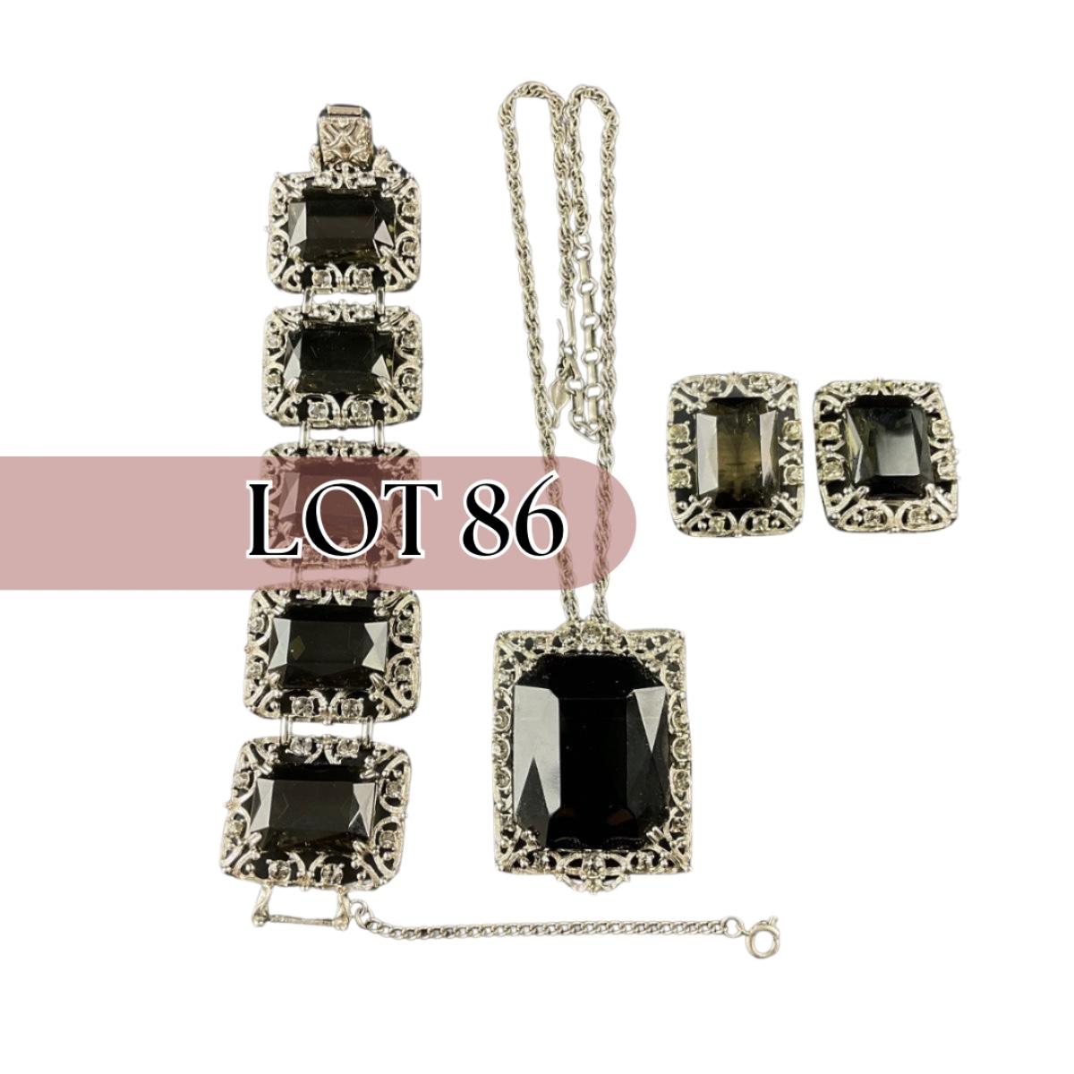 -86- SARAH COVENTRY | Black Stone Pendant, Bracelet, & Earrings Set | Marked