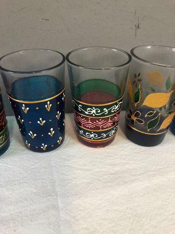 #86 Set of Vintage Hand Decorated Juice Glasses