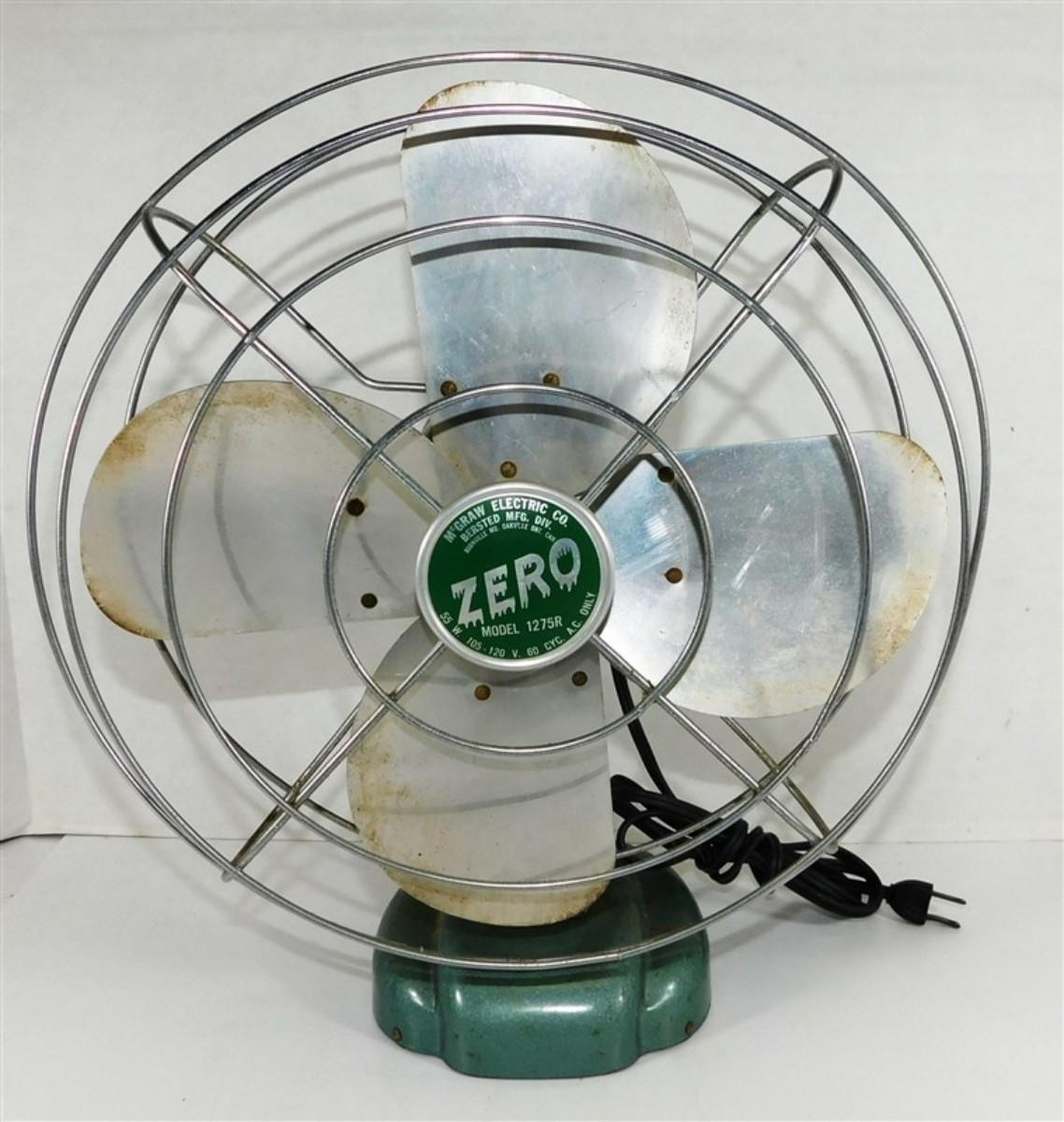 86 Vintage Zero Oscillating Metal Fan Model 1275R Does Work Very Nicely 15 x 13