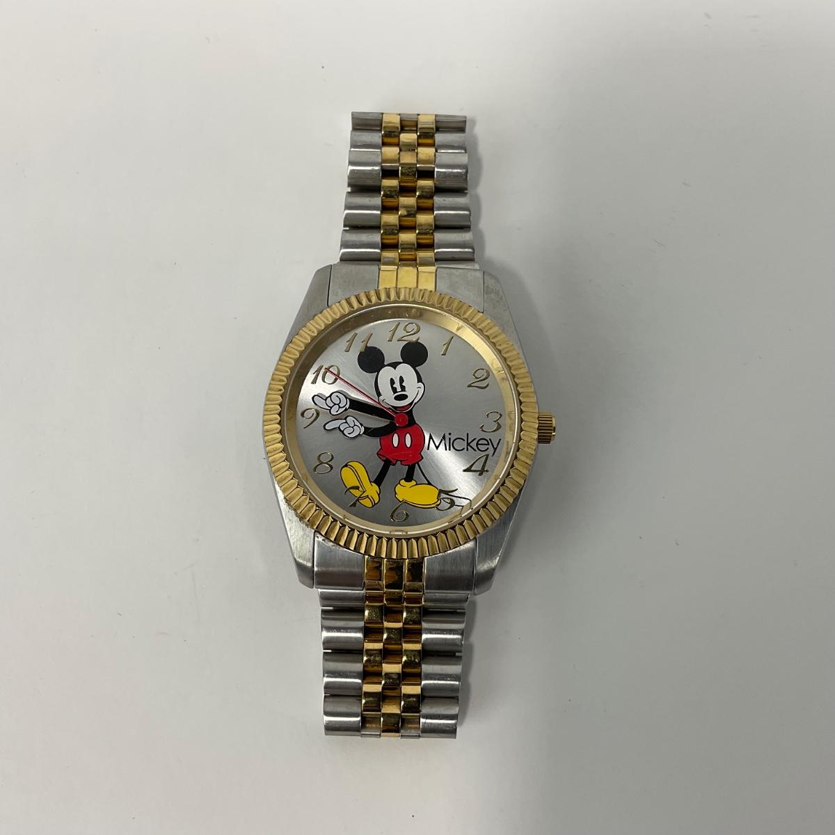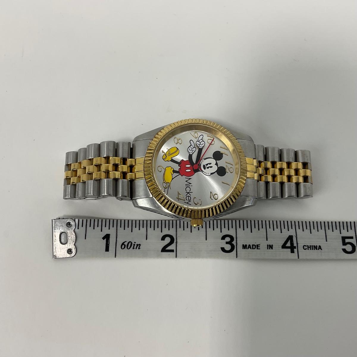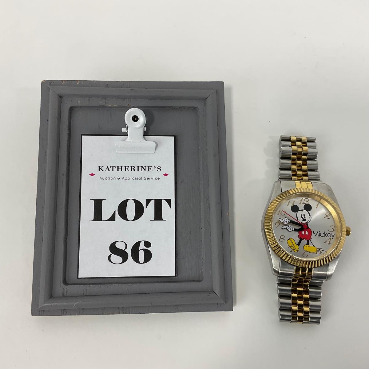One Disney jumbo Mickey Mouse men’s “Moving Hands” watch. In worn well loved condition. Watch has a new battery, in working order and runs. Please see photos for details and condition. Any condition statement is given as a courtesy to a client, is an opinion, and should not be treated as a statement of fact. Reference to condition written, oral or within a condition report shall not be regarded as a full account of condition and may not include all defects, alterations, or restorations. Absence of a condition report does not imply a lot is flawless or lacking imperfections or damage. Katherine’s Auction & Appraisal Service shall have no responsibility for any error or omission. Returns shall not be accepted on the basis of condition. ::: Shipping is available on this lot. If you require shipping you must let us know at the close of the auction. We will coordinate with you after the item has been won. Shipping fees will include insurance up to or exceeding the value of all items being mailed. If you have any questions regarding this lot please contact the auctioneer either via this website, by direct email or by phone. PICK UP TIMES and other important information can be found in the TERMS and DESCRIPTION of the auction. Please take a look for pertinent information. Thanks!
