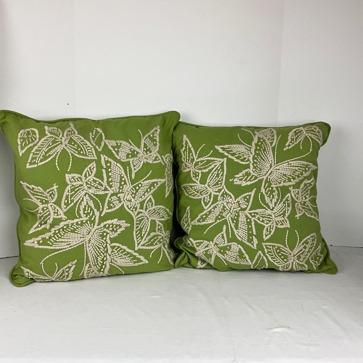 865 Pair of POTTERY BARN Lime Green Butterfly Embroidered Decorative Pillows