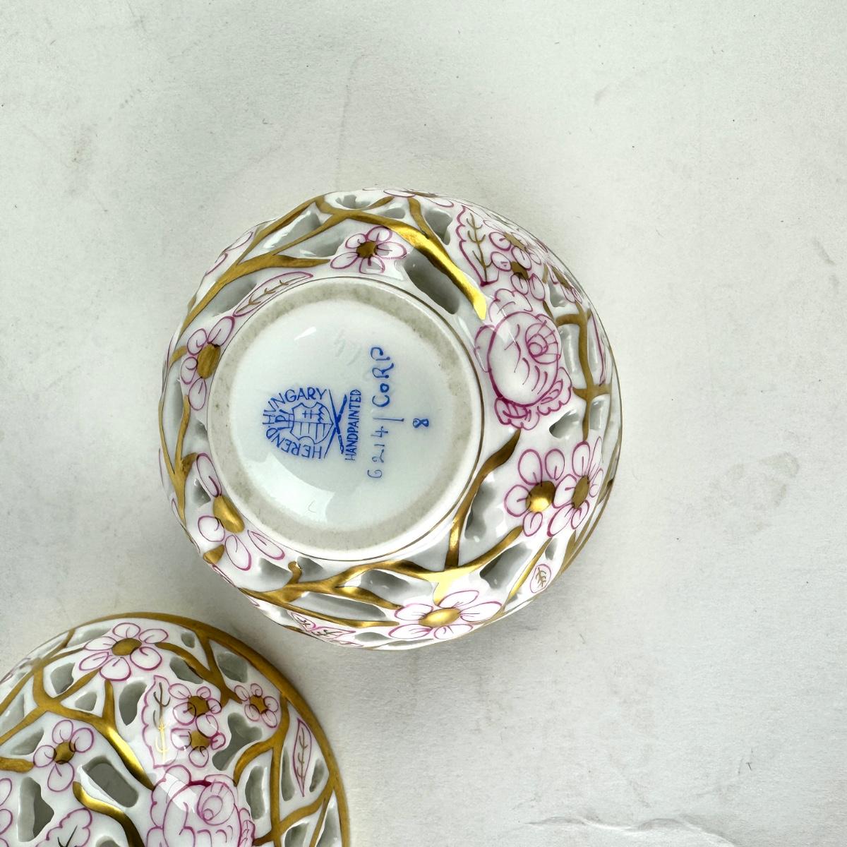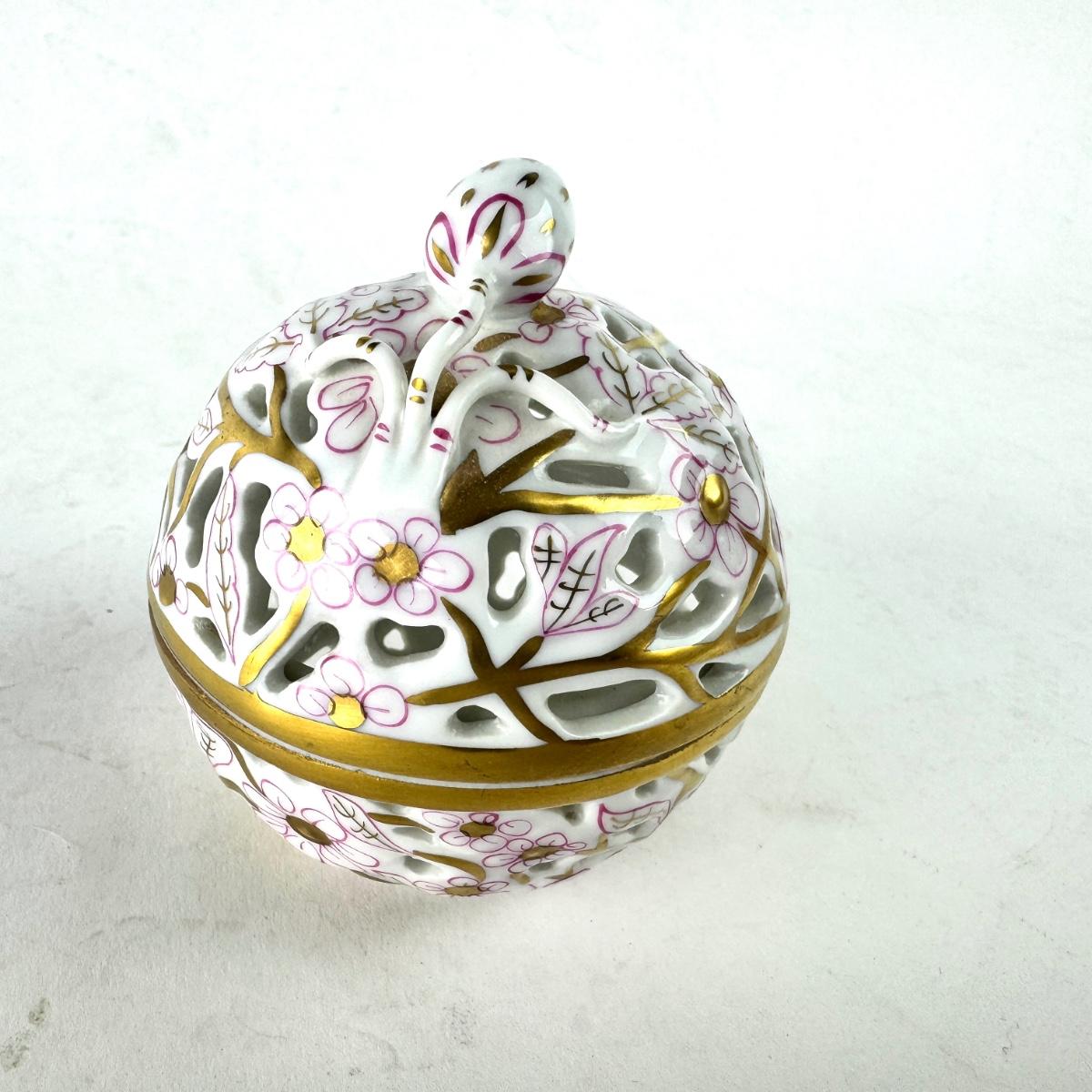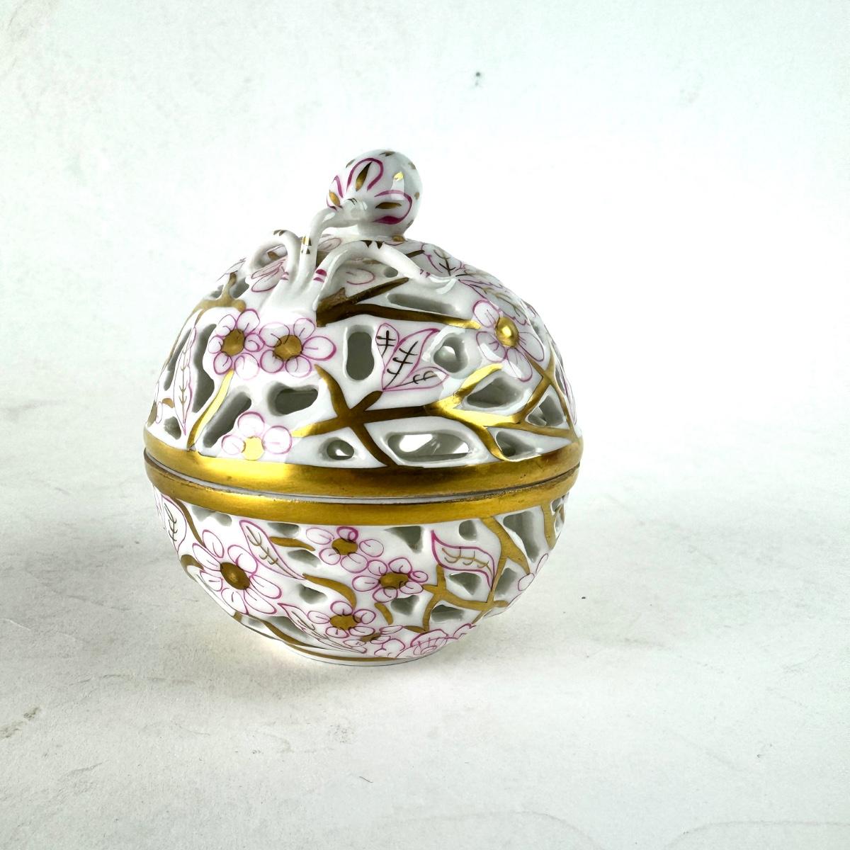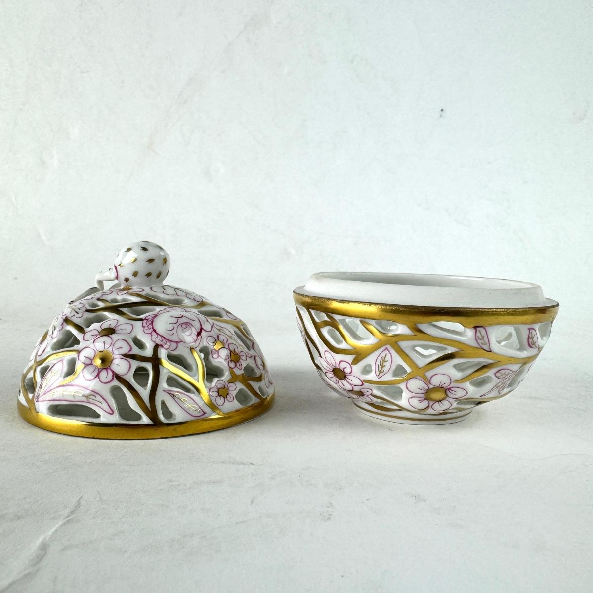 866 Vintage Herend Porcelain Reticulated Bonbonniere Strawberry Design