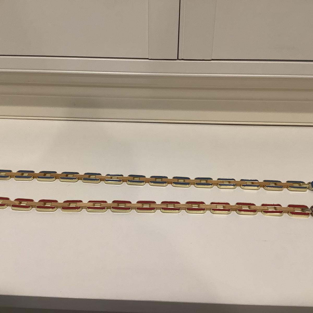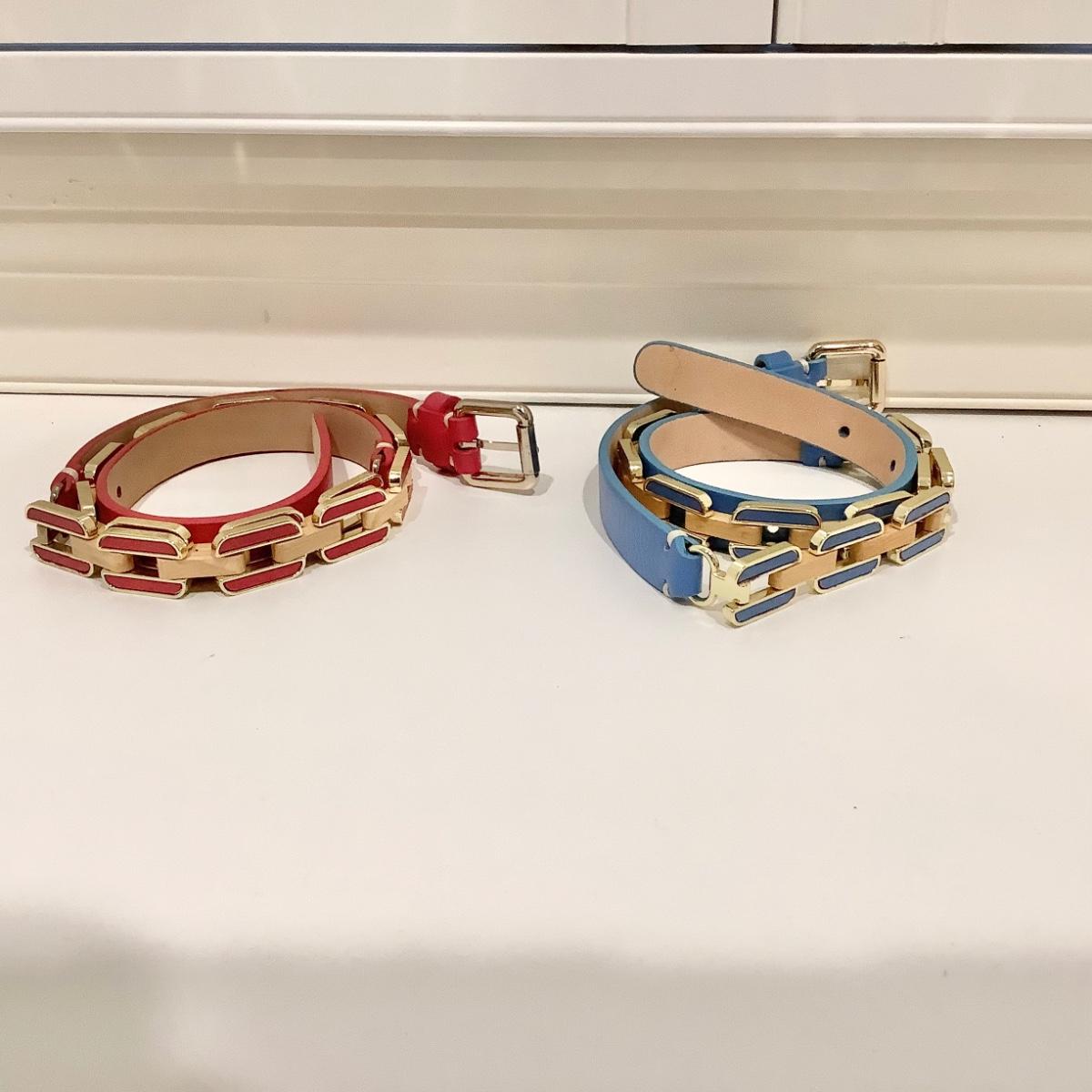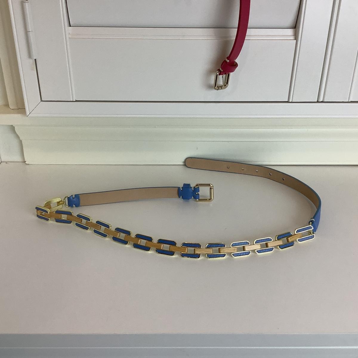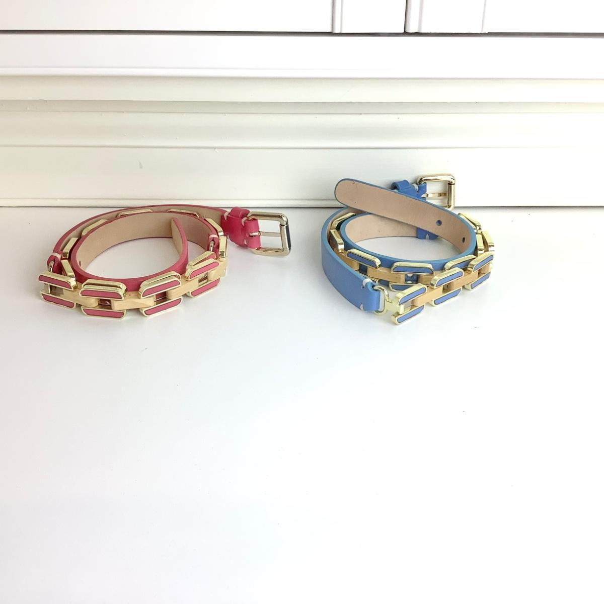 In like new condition size L in fuchsia and periwinkle blue gold link belts