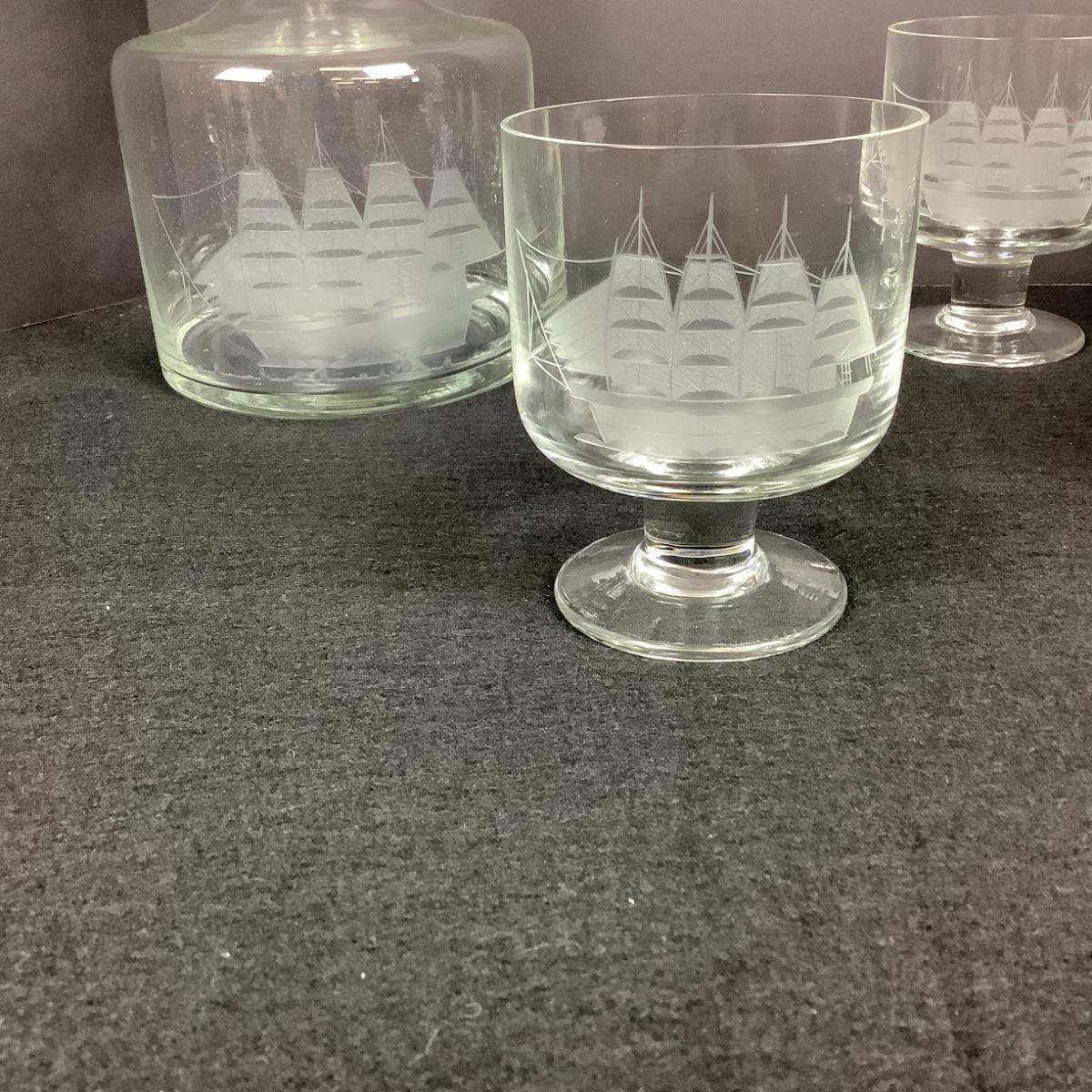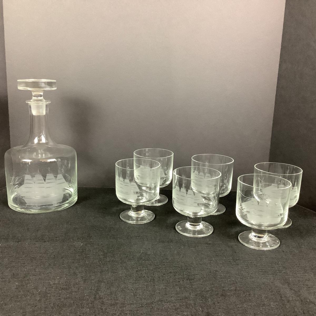 Set of 6 glasses 4.5" high with 1 decanter measuring 10" high