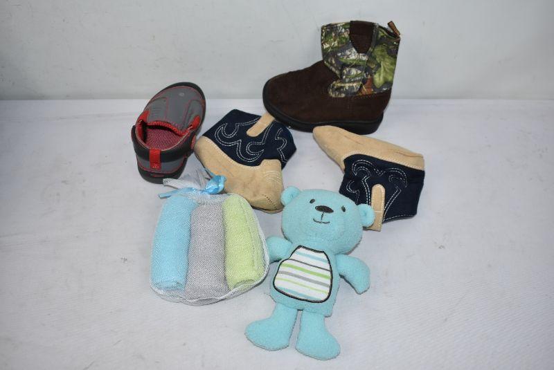 87 Piece Various Baby Boy Items: Sizes 12M-5T Rags, Hats, Shirts, Pants, Socks, Shoes, and More