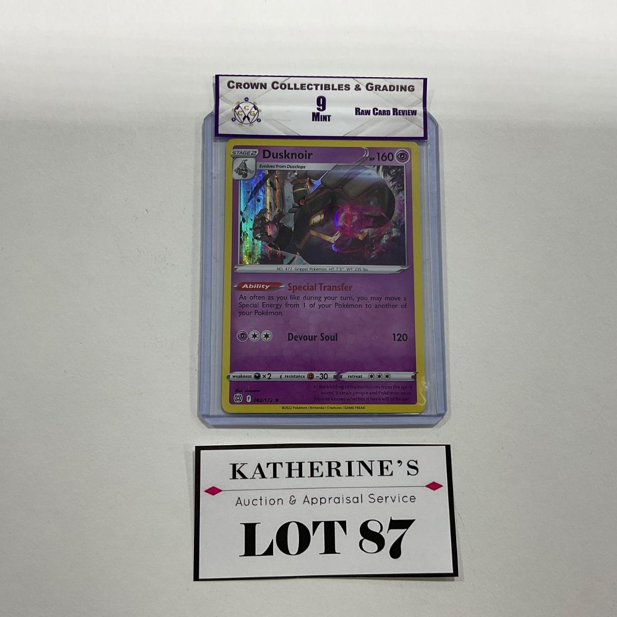 One Crown Collectibles raw review Dusknoir mint 9 card. Please see photos for details and condition. ::: Shipping is available on this lot. If you require shipping you must let us know at the close of the auction. We will coordinate with you after the item has been won. Shipping fees will include insurance up to or exceeding the value of all items being mailed. If you have any questions regarding this lot please contact the auctioneer either via this website, by direct email or by phone. PICK UP TIMES and other important information can be found in the TERMS and DESCRIPTION of the auction. Please take a look for pertinent information. Thanks!