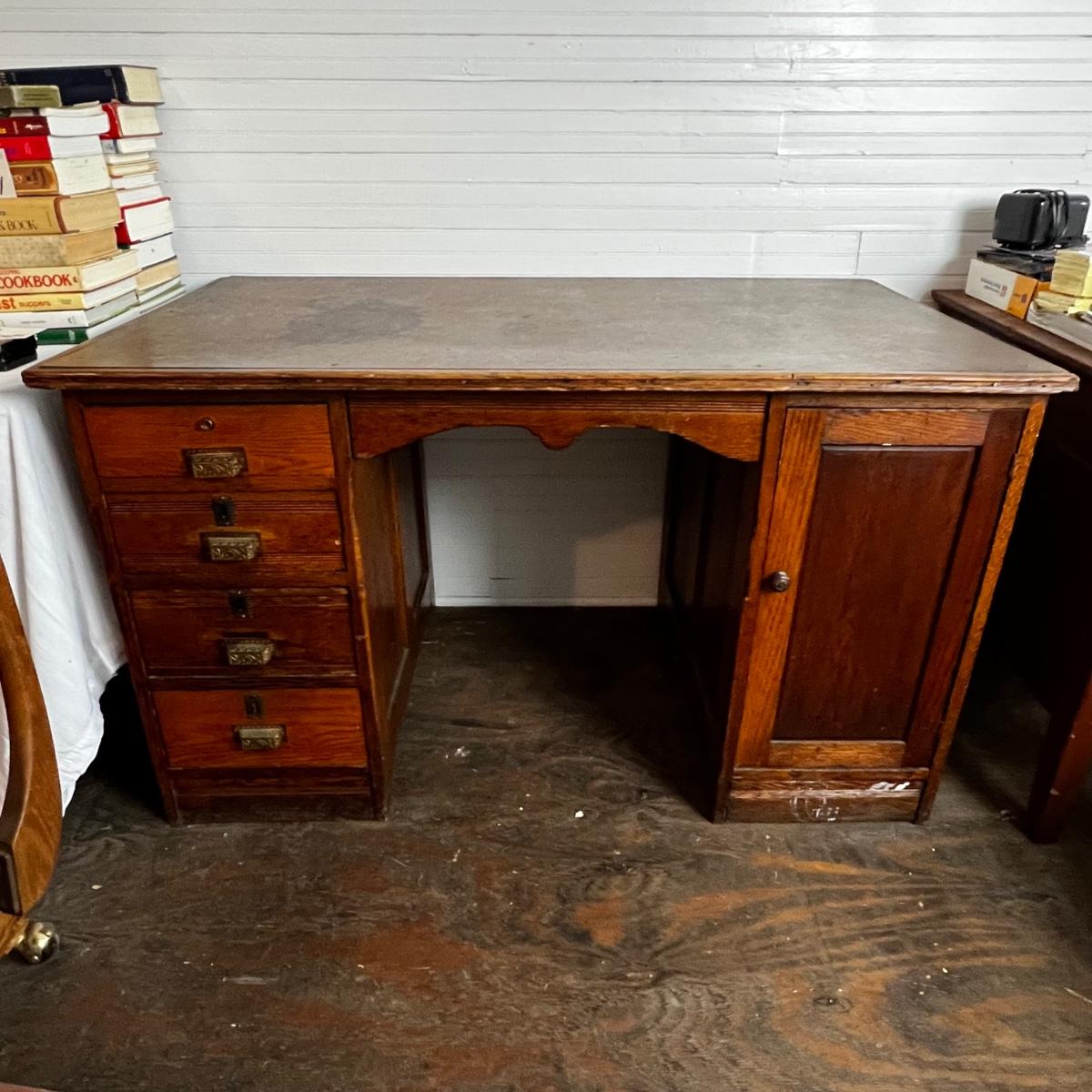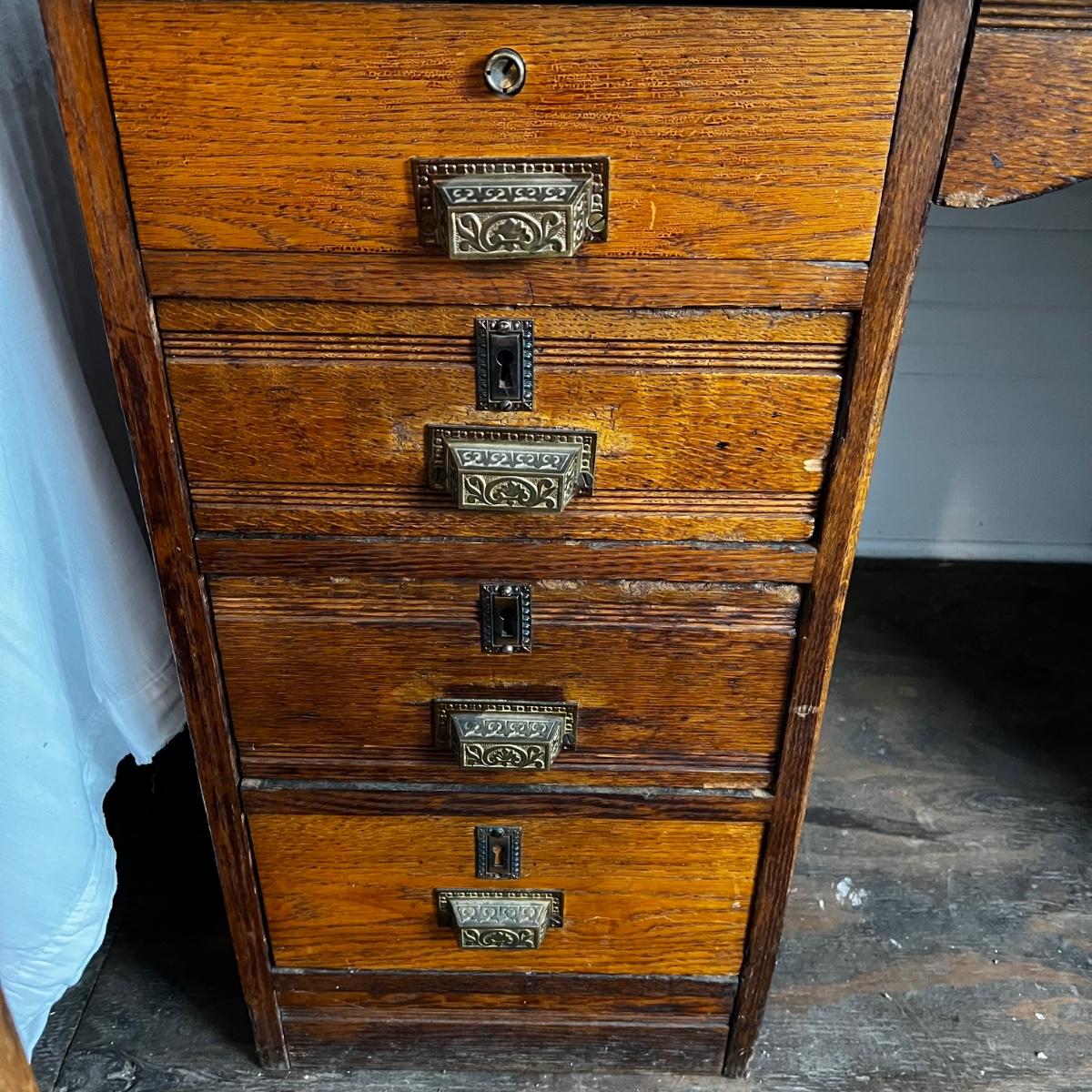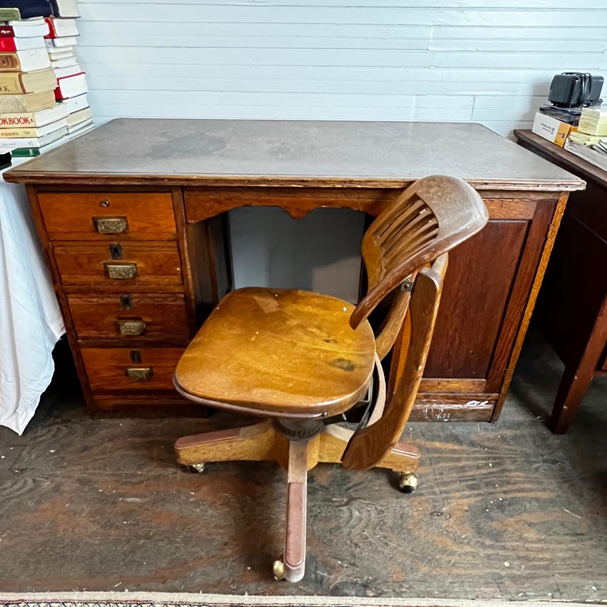 U870 Antique Victorian Oak Desk and Chair