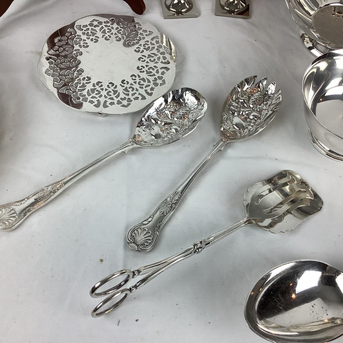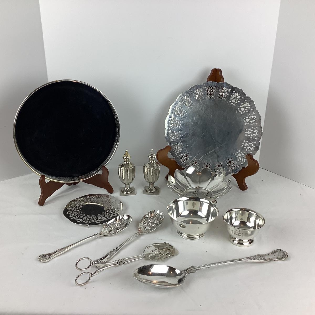 Salad forks, footed trays , paul revere bowls, large stuffing spoon, tongs, trivets , salt and peppery