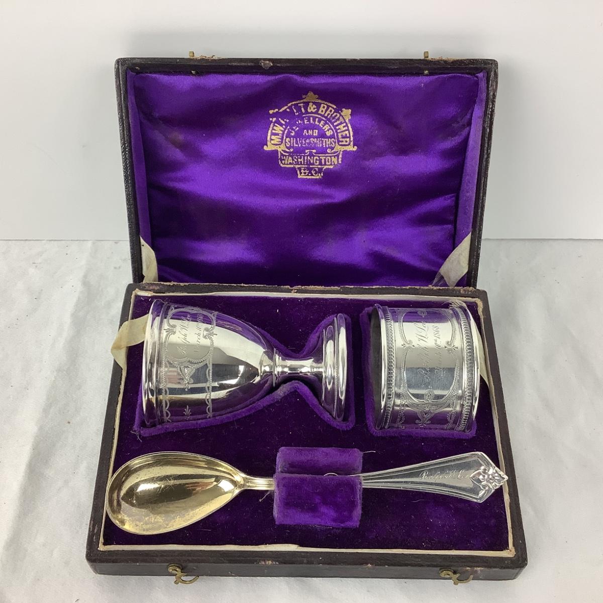 8710 Antique Sterling Egg Cup, Napkin Ring and Spoon