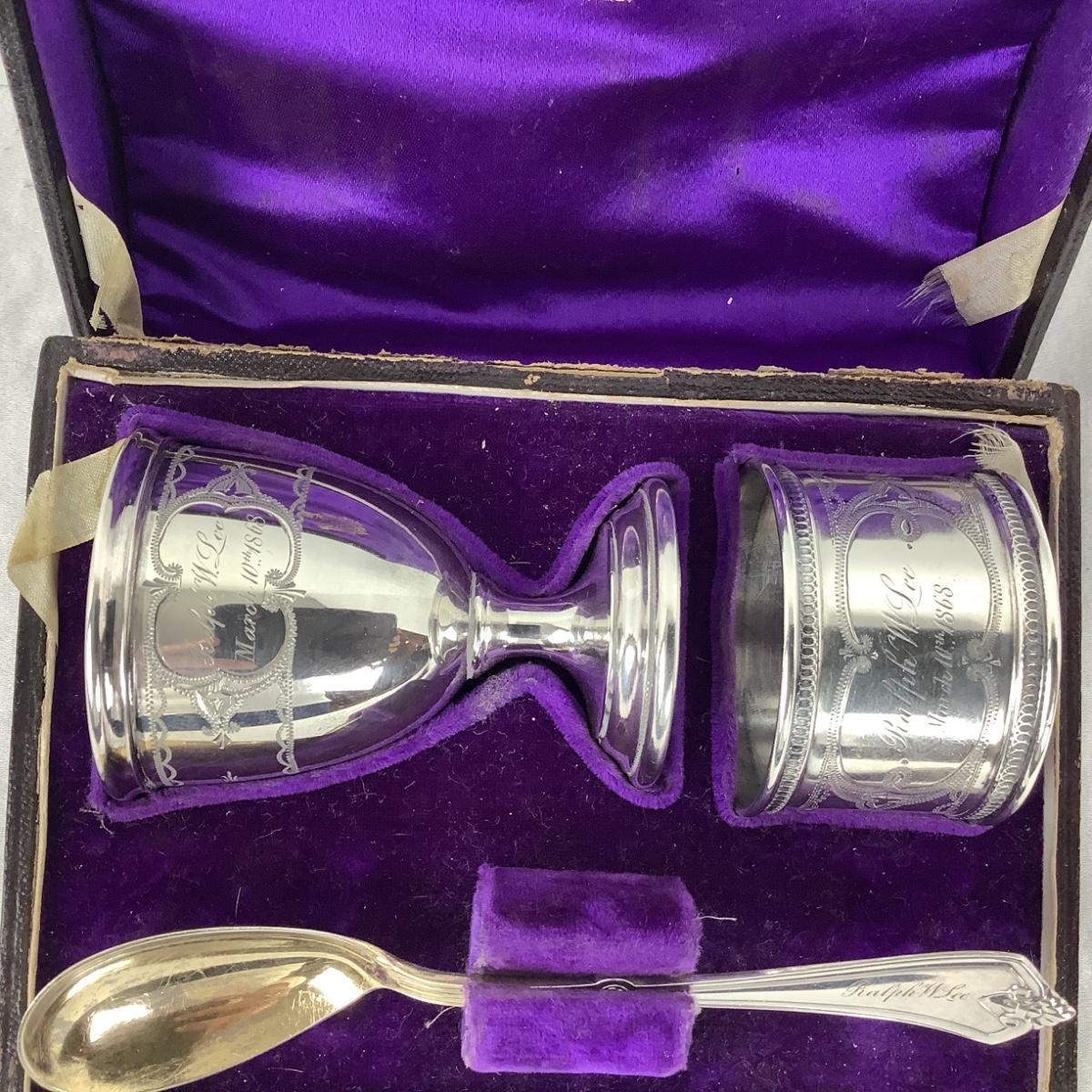 Engraved with Ralph W. Lee 3/10/1868 on all three pieces