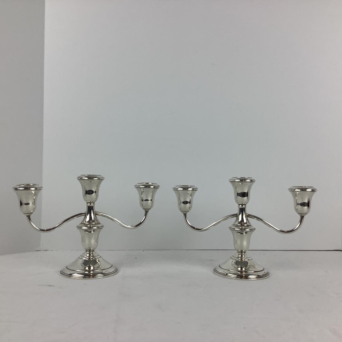 8717 Pair of Three Candle Sterling Weighted Candlesticks