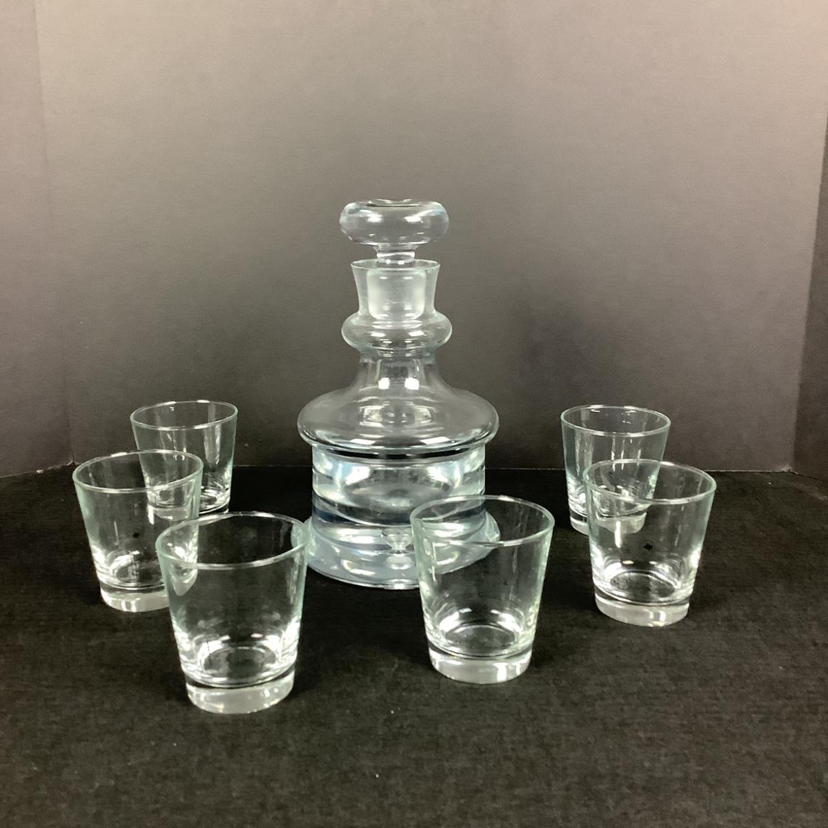 Decanter measures 9,5" with 6 small Amsterdam mobil glasses
