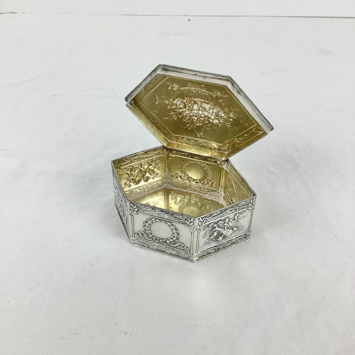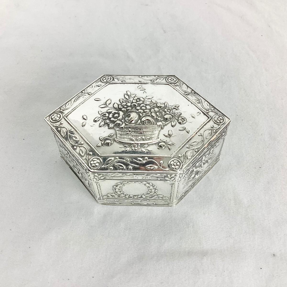 Measuring 3" wide x 2" deep x 1" high with hallmarks