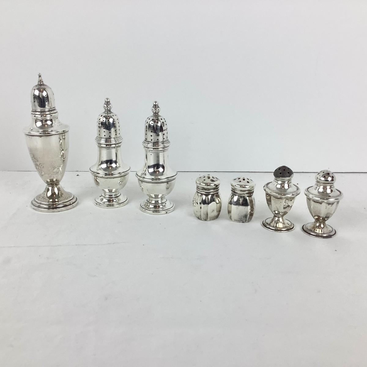 The tallest is 3.75" high and all sterling (not weighted single) weighs 5.0 Troy Ounces