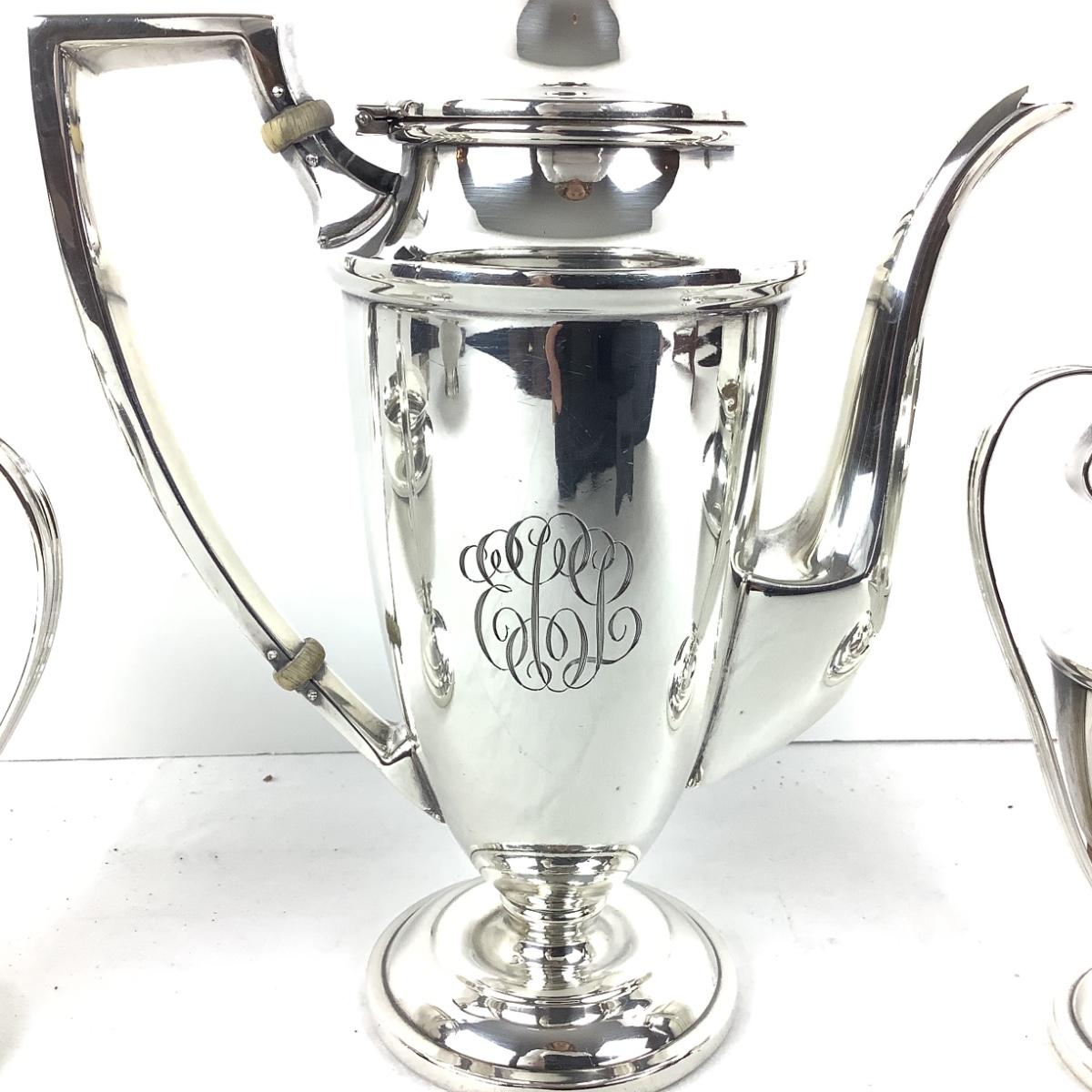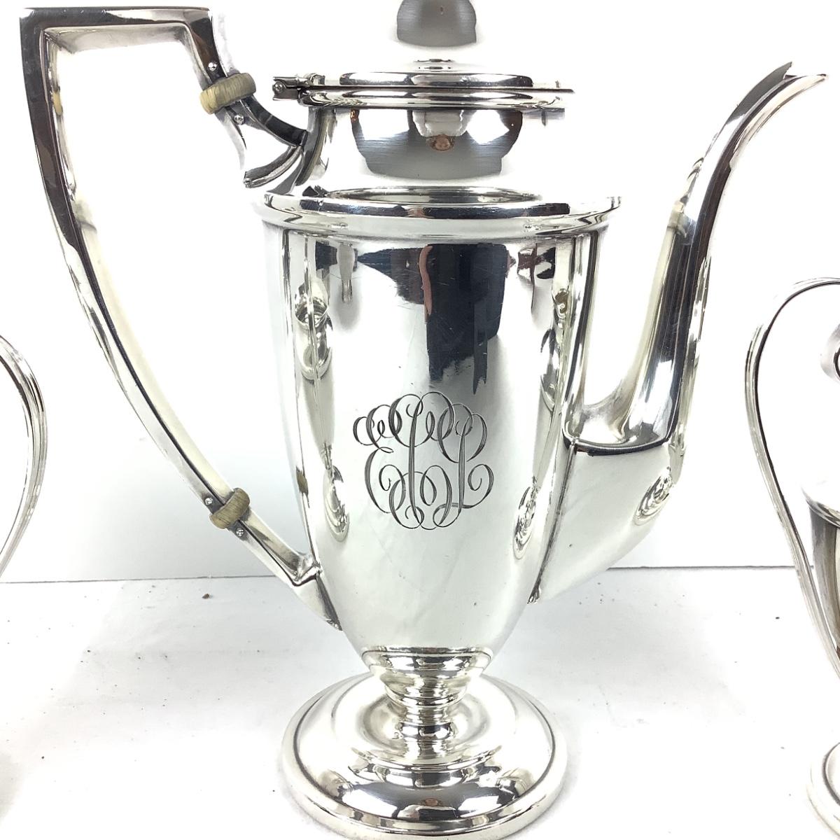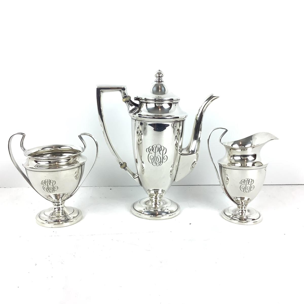 Teapot measures 8" high and creamer is 3.5" high and sugar is 4" high