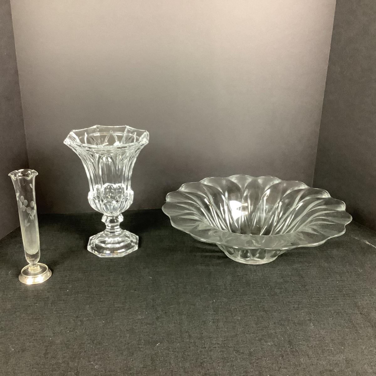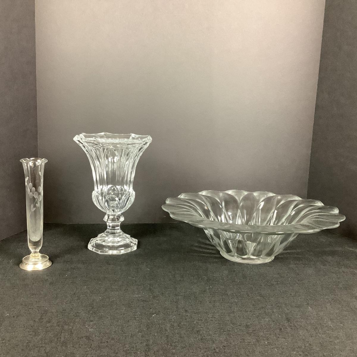 875 Heisey Bowl, Crystal Vase, Sterling Glass Bud Vase