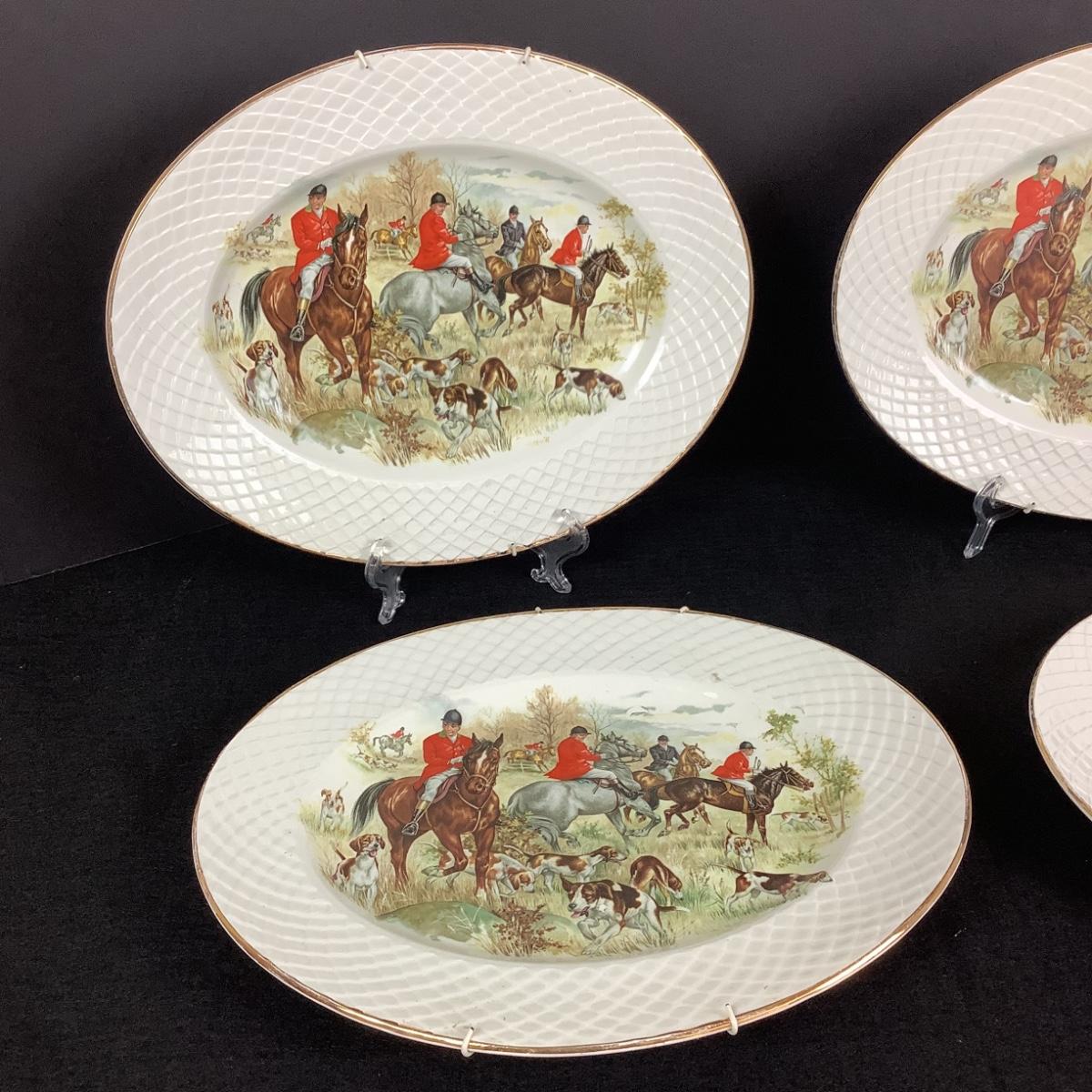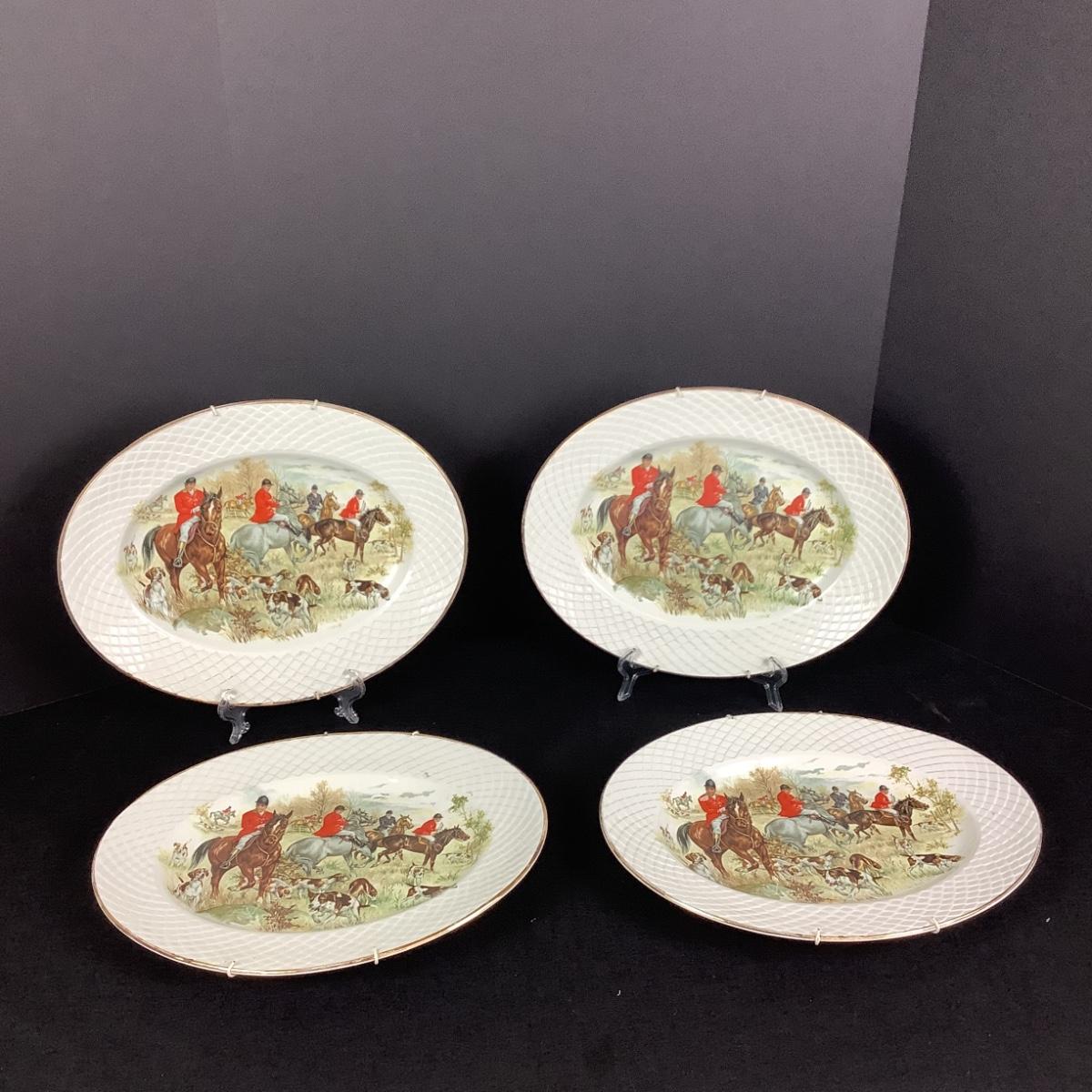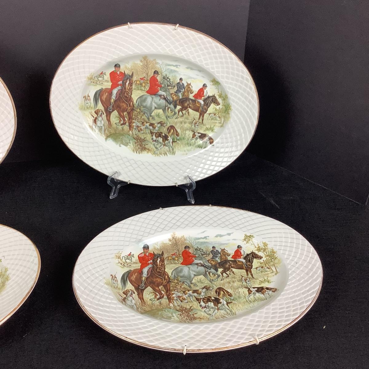 876 Set of 4 Enoch of Wedgwood Hunting Scene Oval Platters
