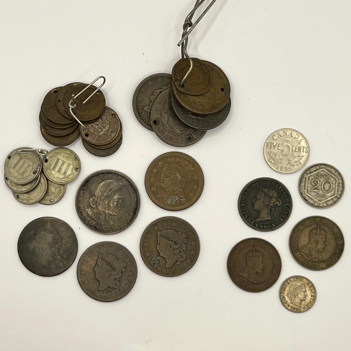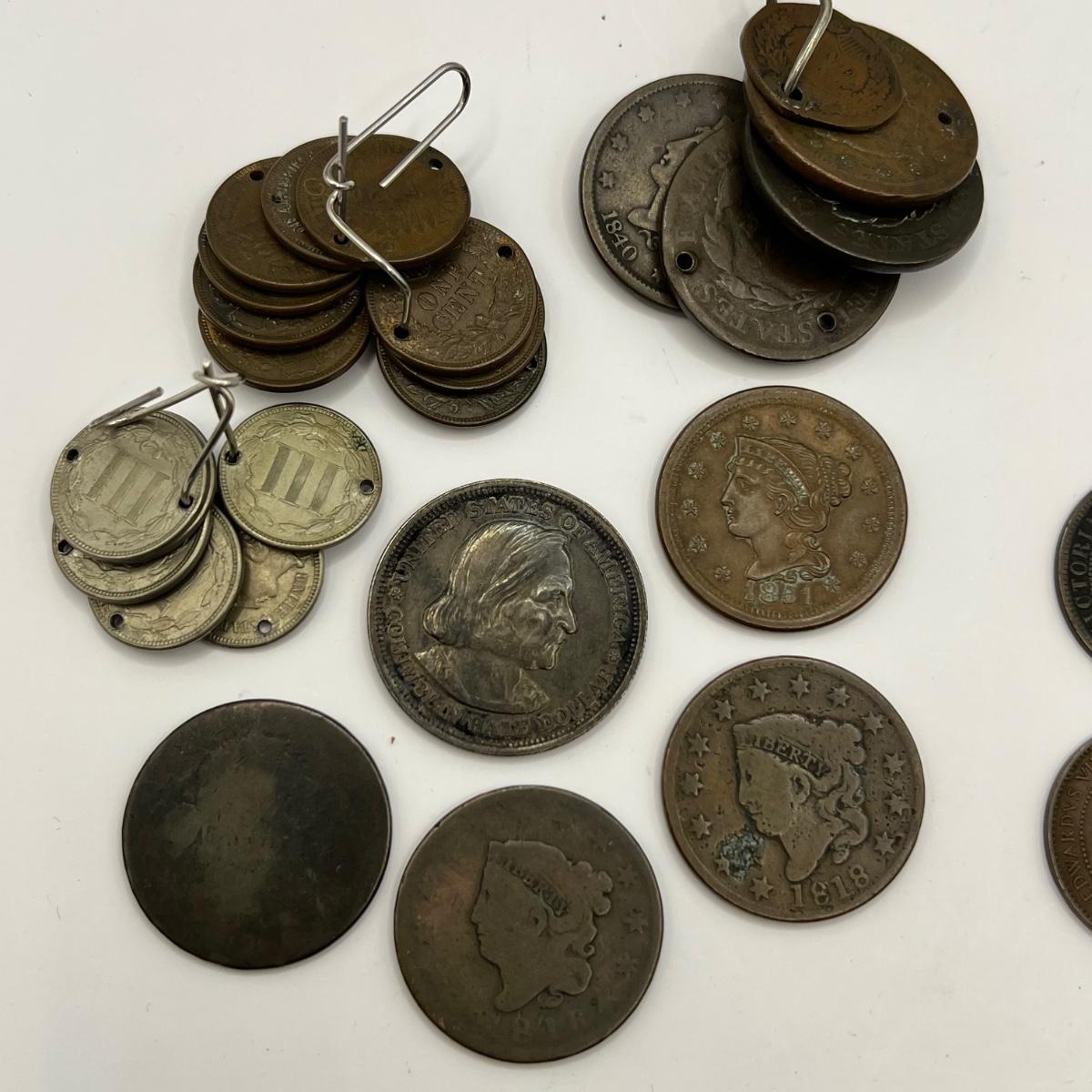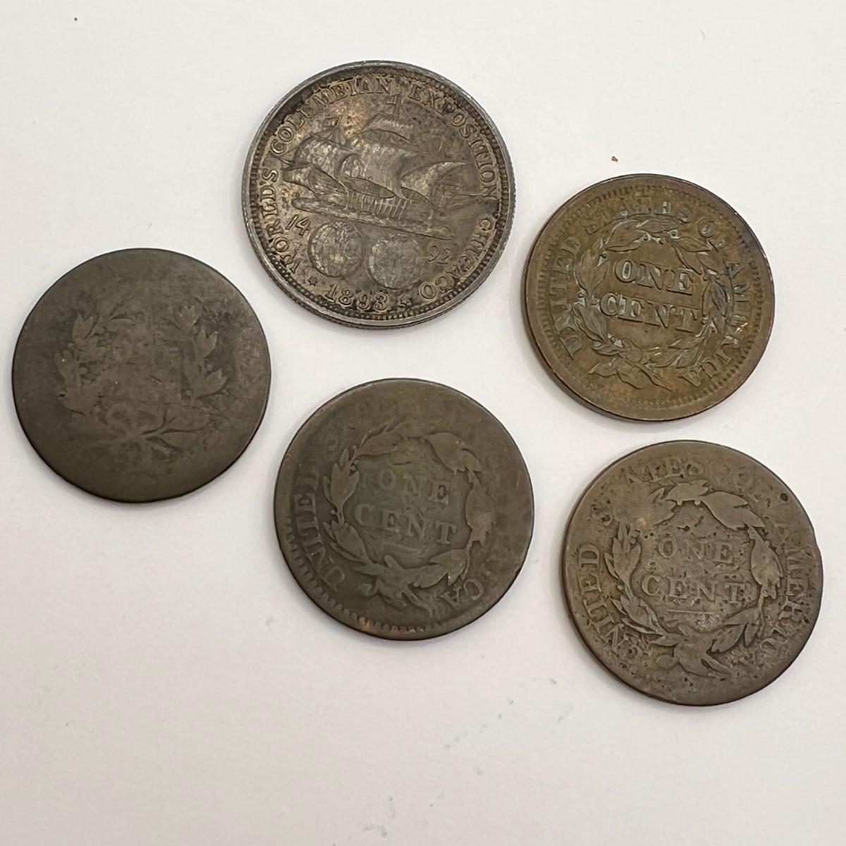 8763 Antique Coins 1816, 1818 Coronet Head Large Cent, 1893 Columbian Exposition Half Dollar & more