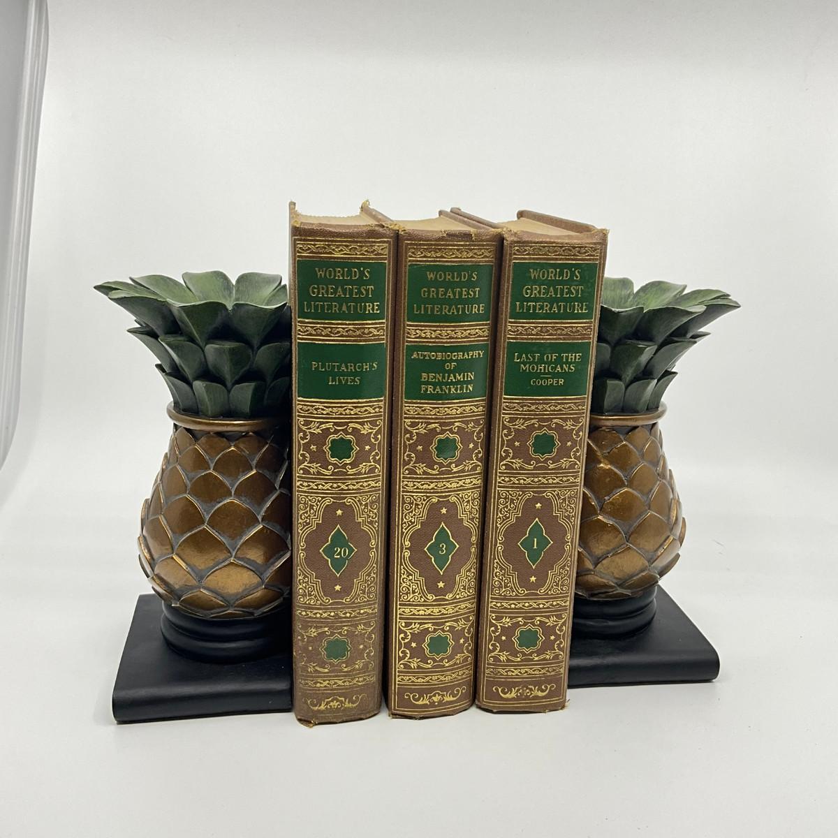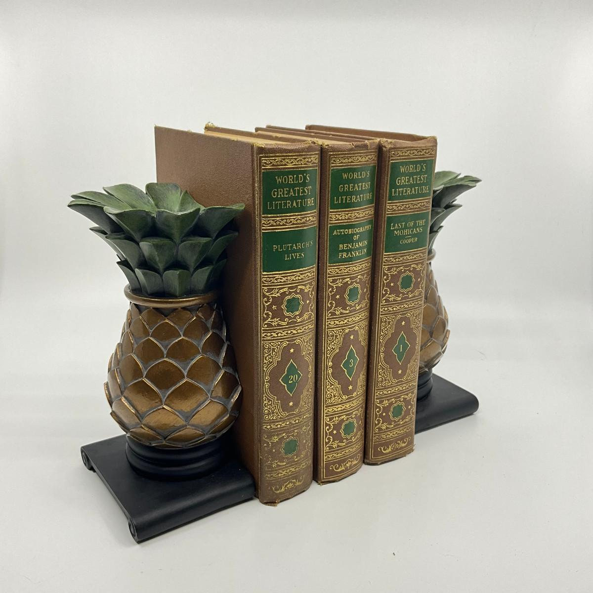 877 Pair of Pineapple Cast Iron Bookends With Books