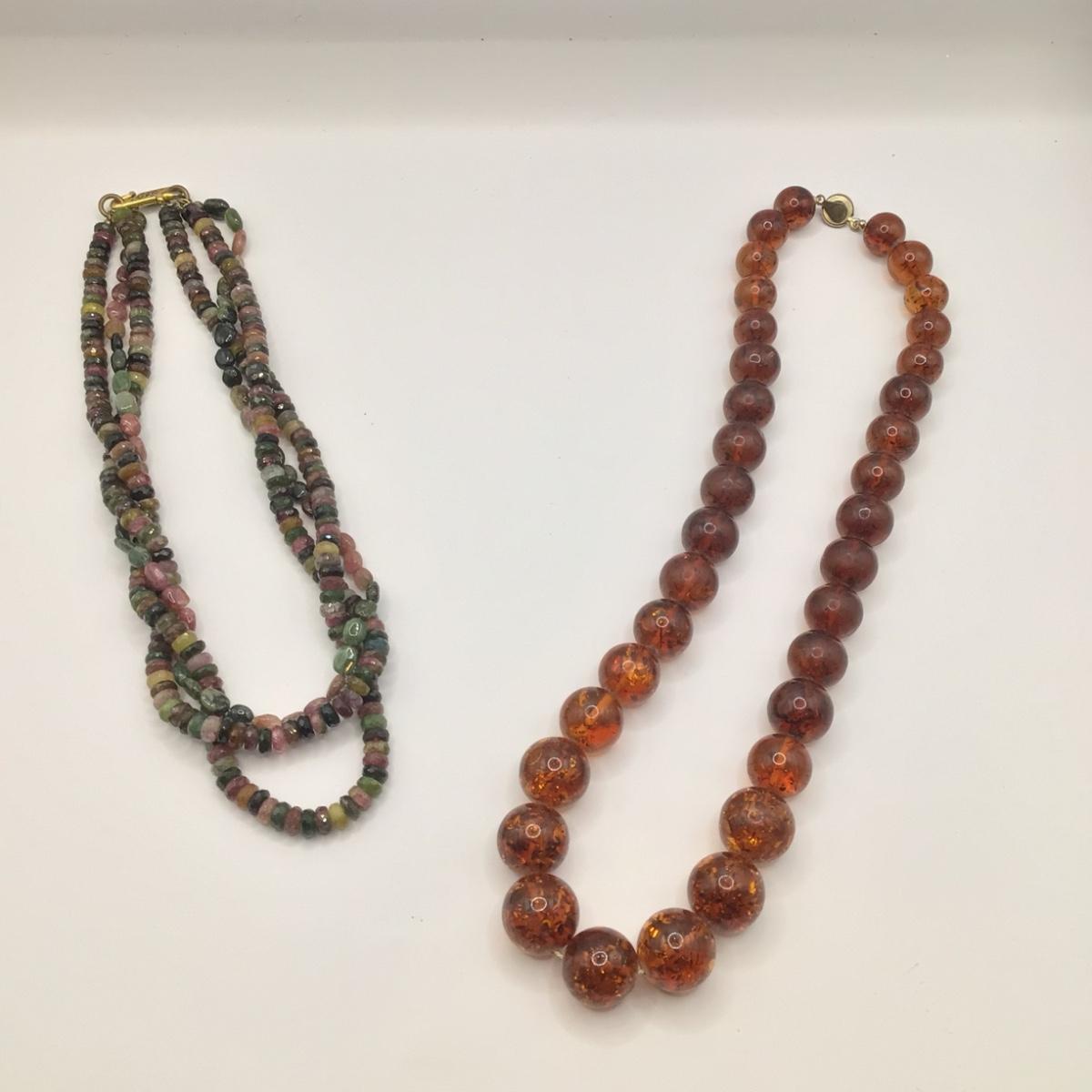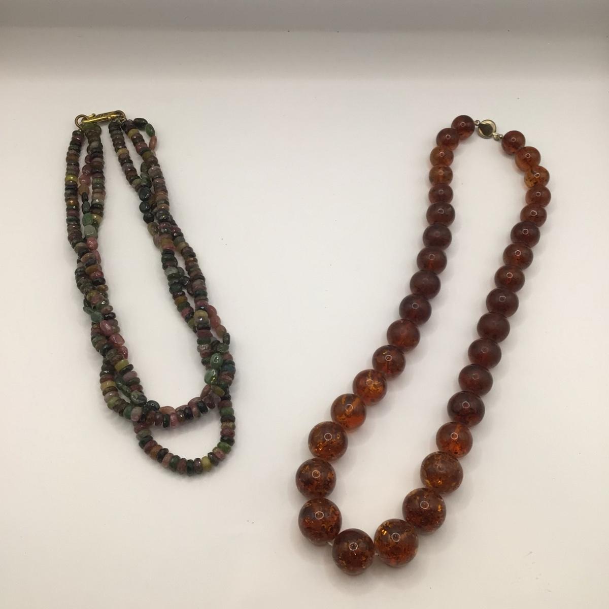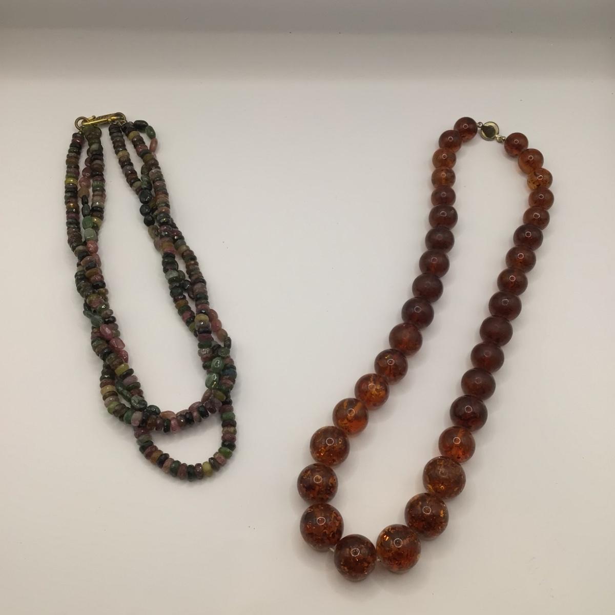 Faux amber necklace is 20" long , multi gemstone is 16" long