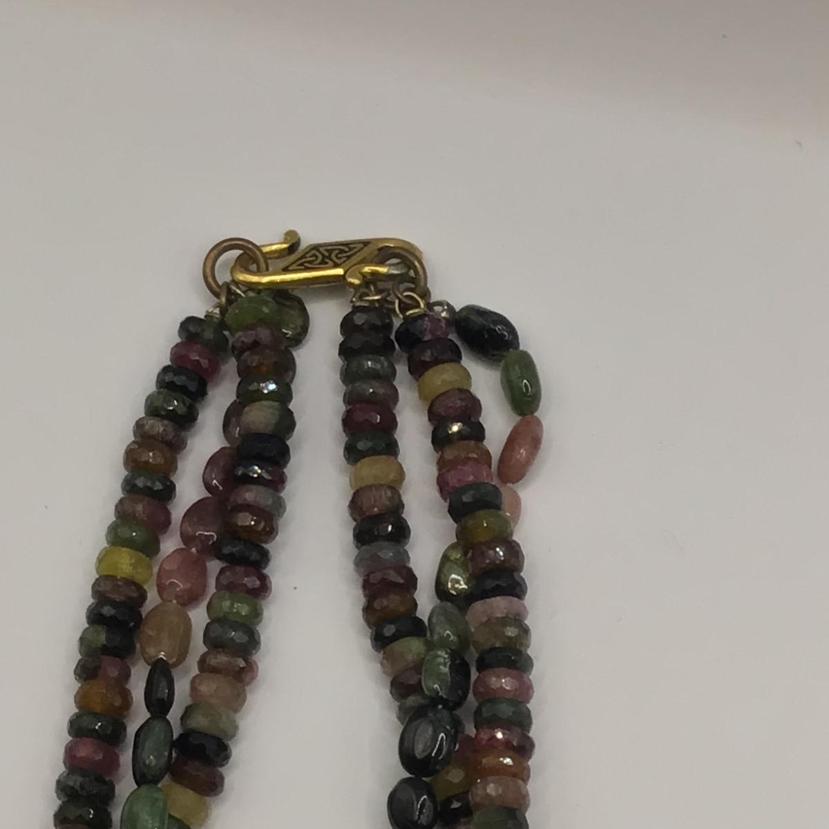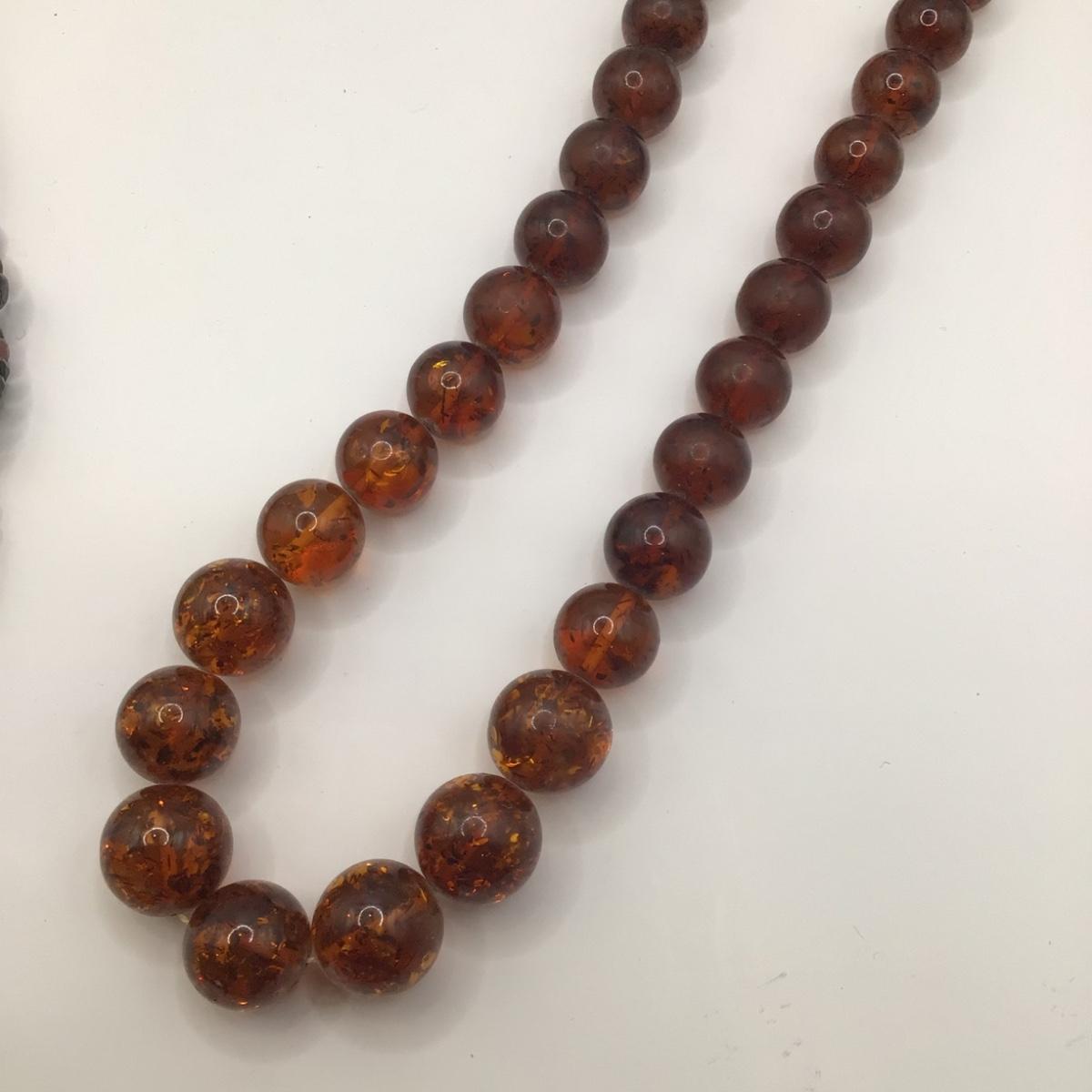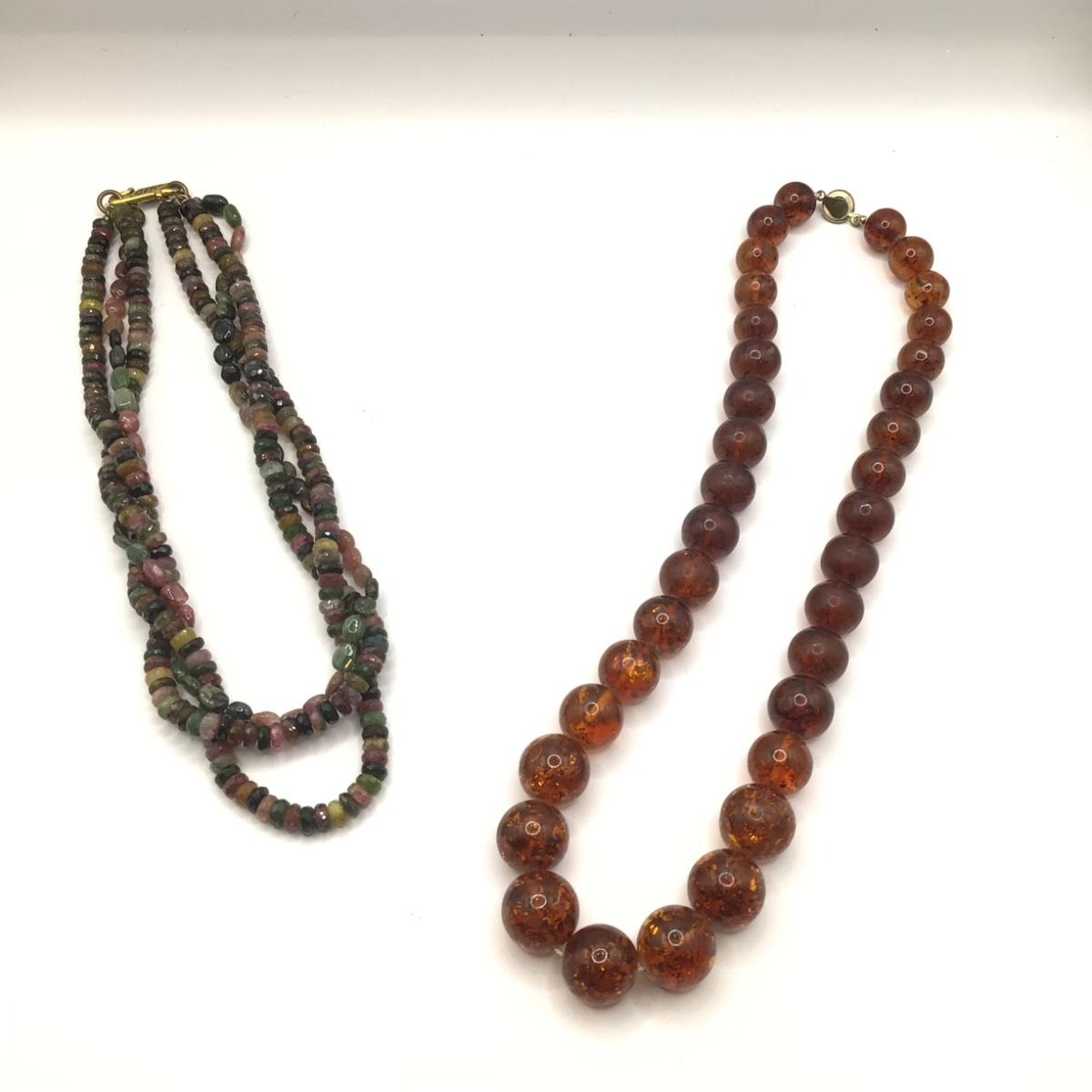 Faux amber necklace is 20" long , multi gemstone is 16" long